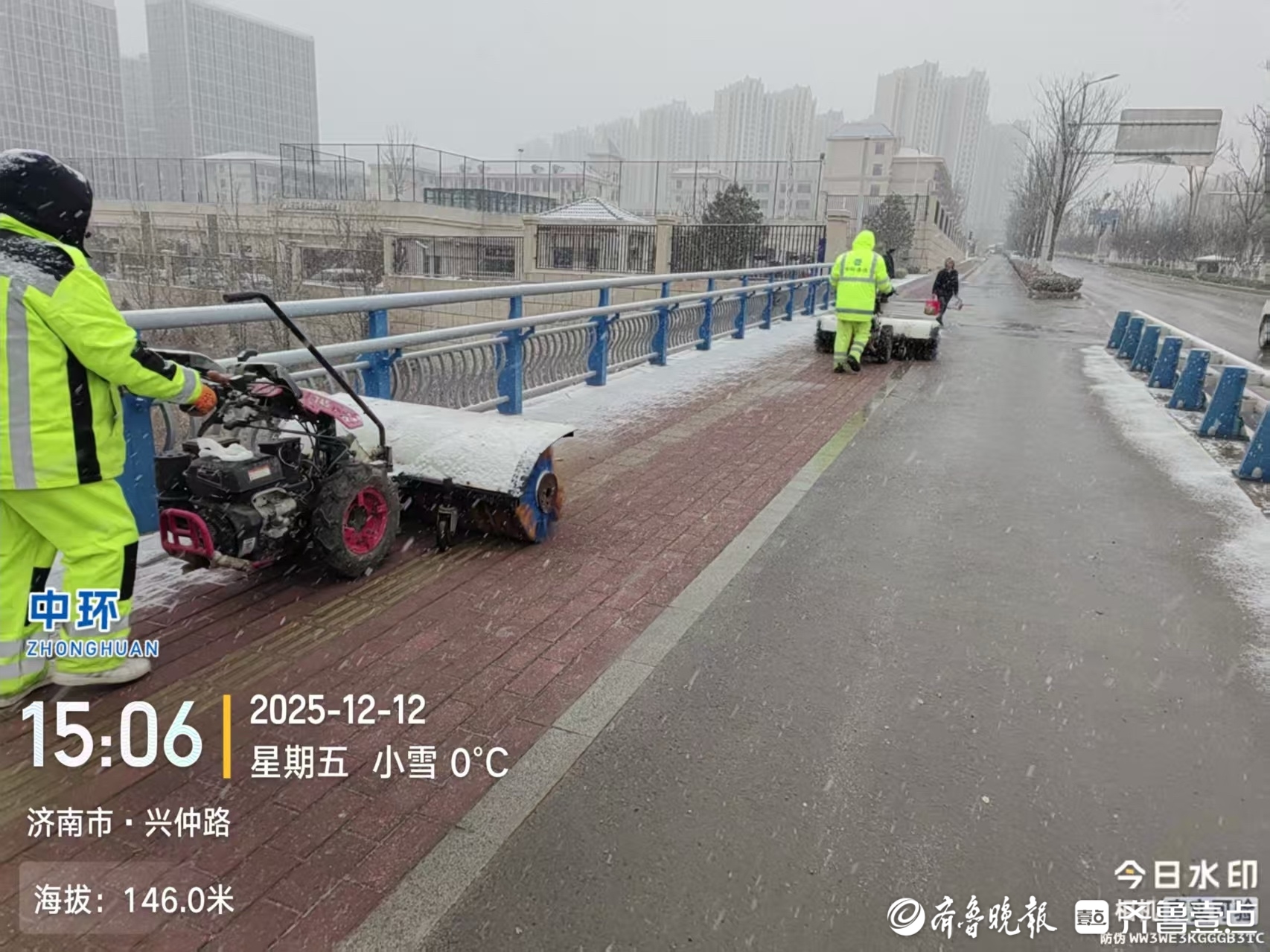 12月12日下午,济南迎来2025年下半年首场降雪,为保障市民出行安全、城市有序运转,市中城管以雪为令、闻雪而动,迅速集结各方力量投入扫雪除冰工作。