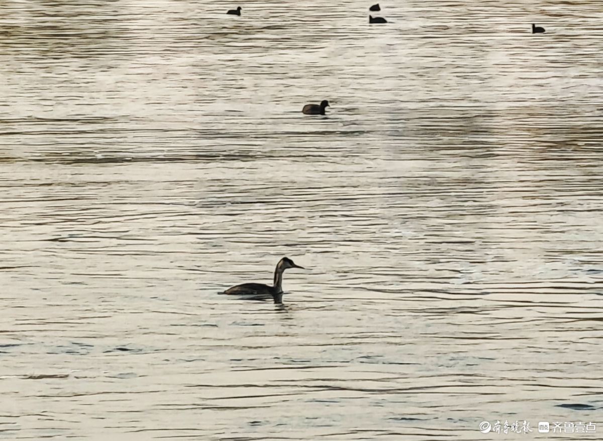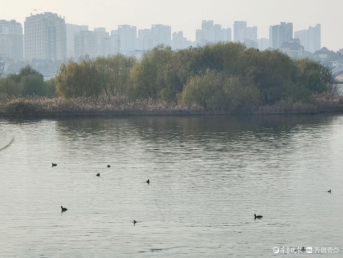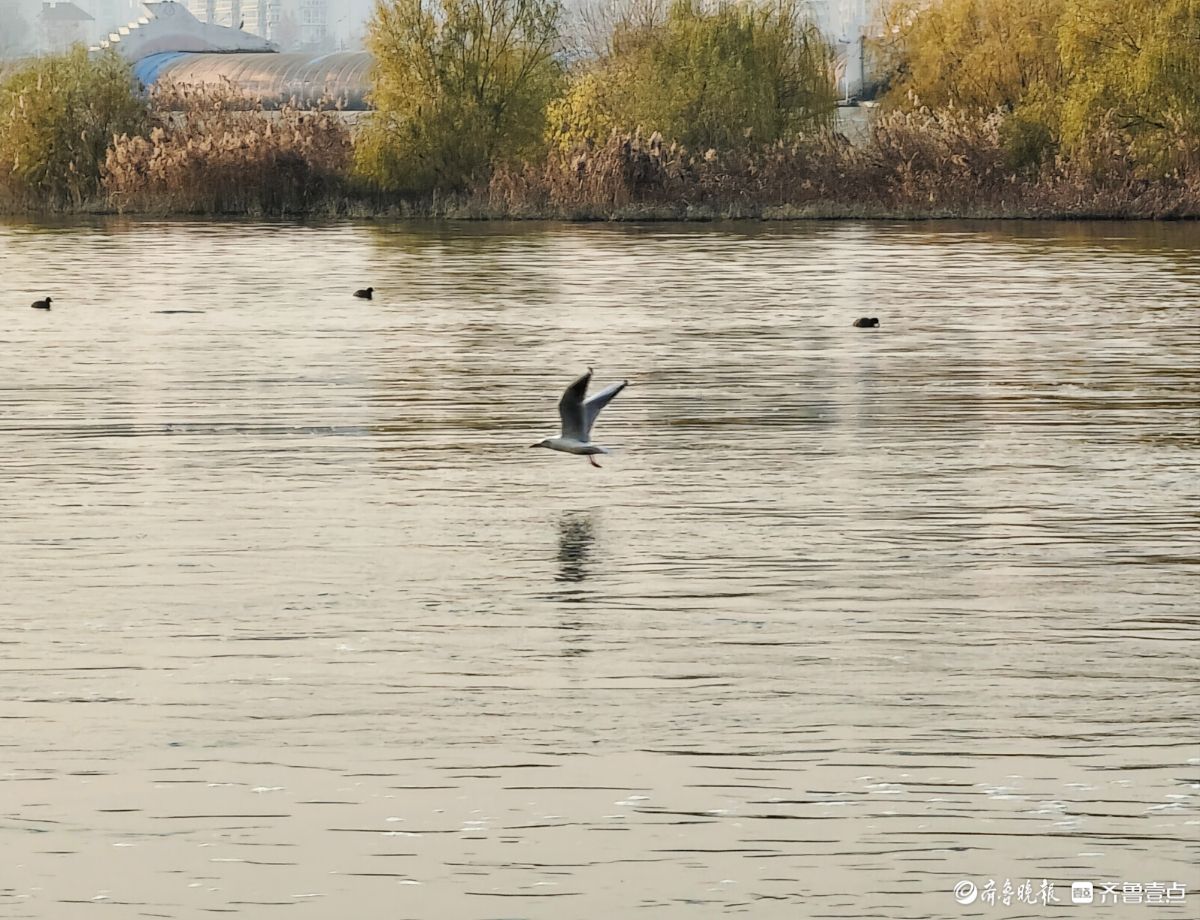12月9日,漫步沂河岸边,河畔简直成了水鸟的家园。瞧,一群群欢快的水鸟在各自忙碌。天空中,三两水鸟不住地飞翔盘旋;河水里,成群水鸟正觅食嬉戏,时而潜入水中,时而游于水面。