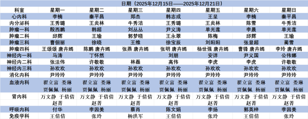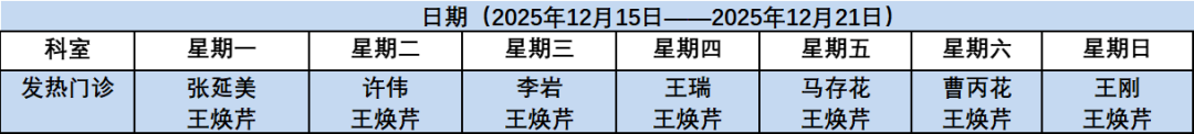 新泰市人民医院互联网医院线上医生出诊时间安排(2025年12月15日21日)