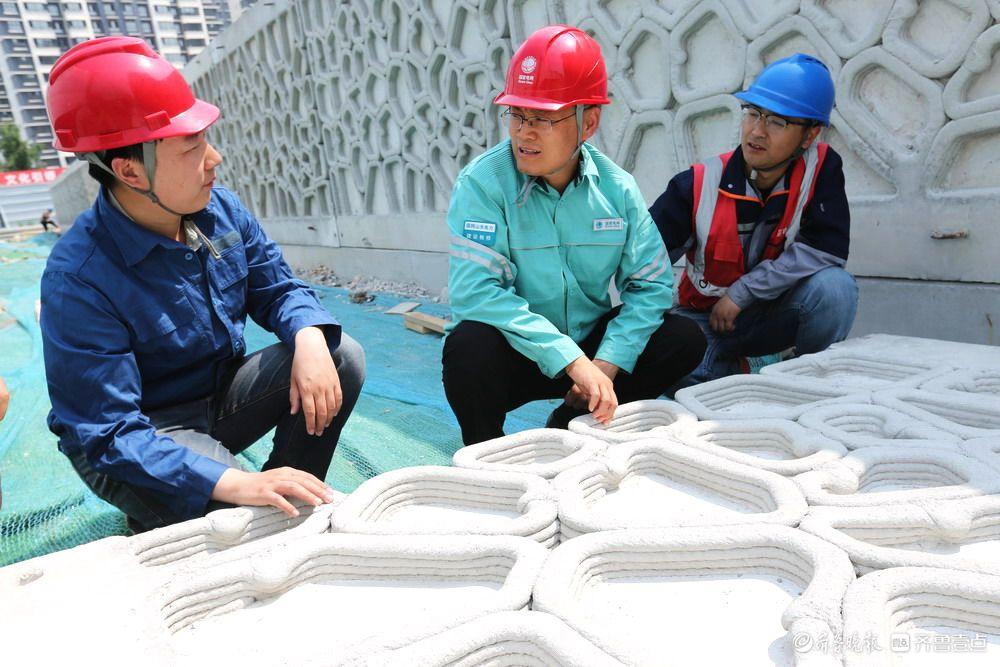3D打印围墙是信华工程的最大亮点。传统围墙建造采用砖砌或支模浇筑,现场需要10多名工人,工作效率低且难以把控施工工艺。信华站订制3D打印围墙86块,全部为利用固体废弃物等可再生资源建造,减低碳排放,艺术化定制,安装速度快两倍,节省人力约五成,工期仅为一周时间。