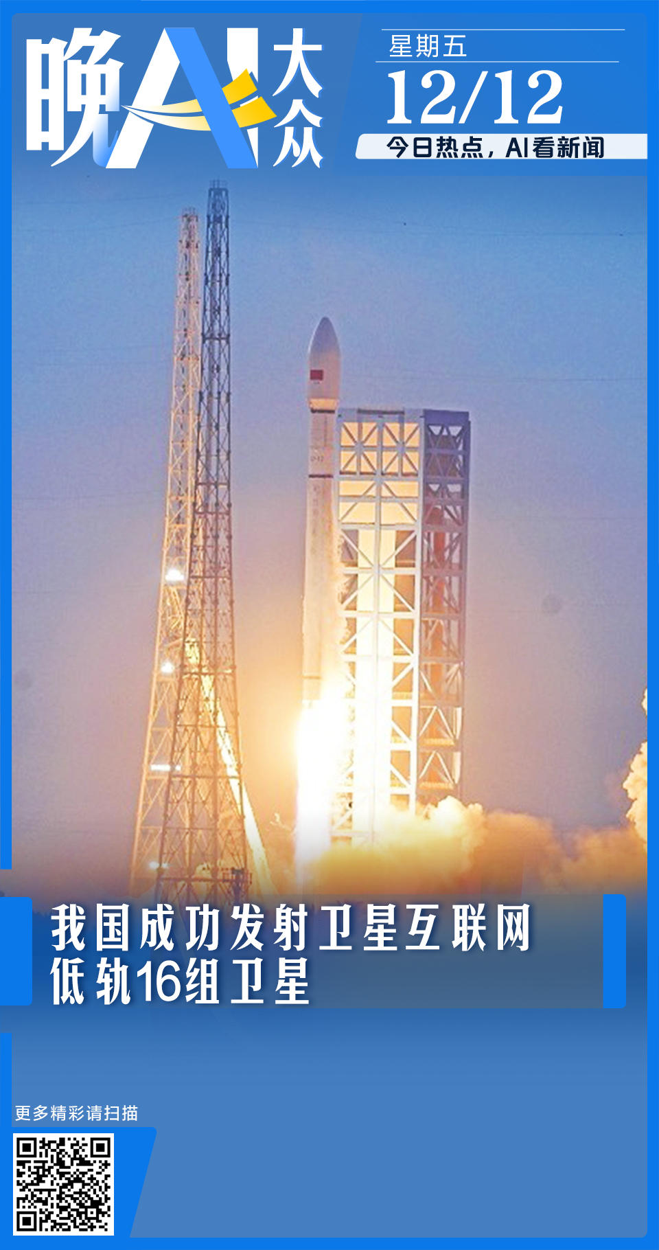 北京时间2025年12月12日07时00分,我国在海南商业航天发射场使用长征十二号运载火箭,成功将卫星互联网低轨16组卫星发射升空,卫星顺利进入预定轨道,发射任务获得圆满成功。详情>>