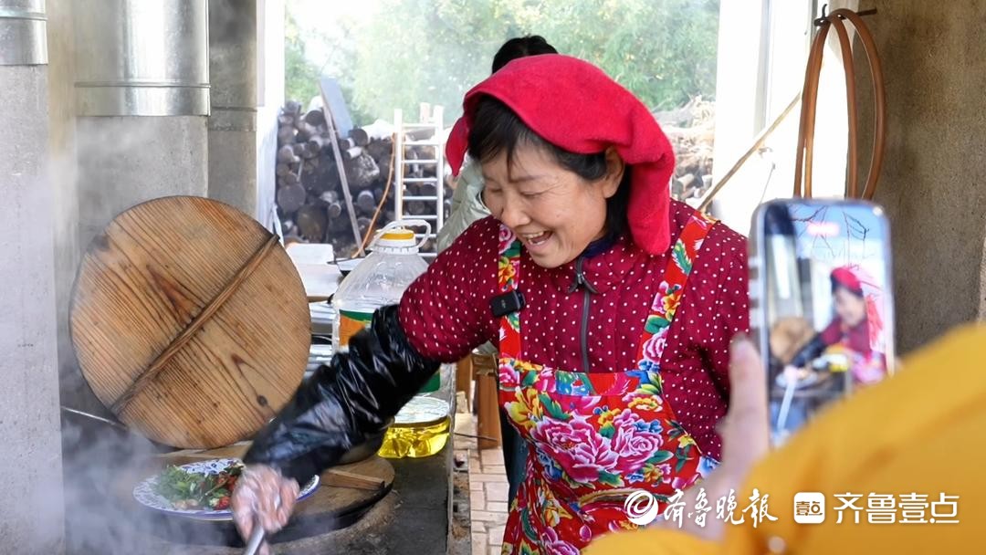 市中区齐村镇辣子鸡产业片区经营户赵敏,在地锅前忙着烧火,只见锅内热油翻滚,滋滋作响,赵敏一边翻炒辣子鸡一边哼唱民谣:“凤凰山下辣子香,土鸡炒出致富方,邻里抱团谋发展,幸福的日子万年长!”朗朗上口的民谣引得围观食客纷纷鼓掌,不少人举起手机记录这充满烟火气的场景。葱姜蒜与土鸡的鲜香交织,再加入本地皱皮辣椒和秘制酱料焖煮,浓郁香气瞬间弥漫整条街巷。赵敏兴奋地说:“炒鸡要急火快炒,酱料得用本地古法酿造,散养土鸡的肉质才够紧实弹牙!俺从小就跟着俺娘学炒鸡,俺这个手艺传承好几代了。俺一高兴,就爱唱歌,唱咱枣庄的民谣,唱咱农村的美好生活,所以说呢,大家都是奔着我是‘会唱歌的辣子鸡姐’来的!”