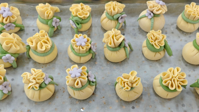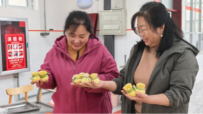 前期调研中,刘志涛了解到社区有不少面塑爱好者,这次,刘志涛专门邀请融媒艺术团面食部王婷老师来到现场,开展了一堂生动的手工面塑教学课。从揉面、调色、塑形,到捏形、点缀,社区“学员”们也跟着指尖翻飞间,原本朴素无奇的面团逐步勾勒出鲜活轮廓。