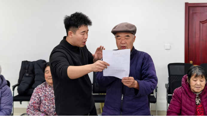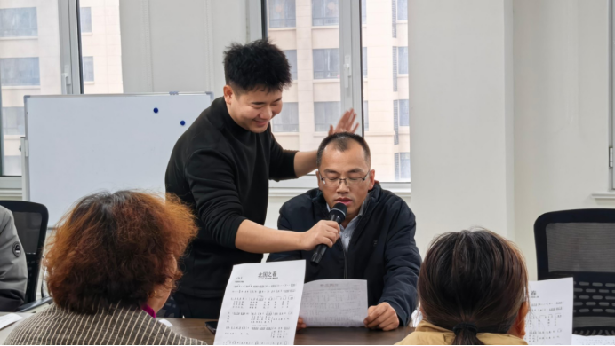 声乐指导的活动现场同样热闹十足。社区室内活动场地内,歌唱爱好者齐聚一堂,融媒体中心融媒艺术团声乐团刘明章老师带来系统性指导。活动以“发声练习”开篇,老师通过通俗口诀与现场示范,讲解呼吸技巧、音准把握等基础知识点,帮大家纠正错误发声方式。随后,结合村民兴趣与演唱水平,选取经典红歌、乡村民歌等耳熟能详的曲目开展集体教学,逐句点拨咬字、情感表达与节奏把控。现场还设置“一对一”辅导环节,针对性解决个人问题,鼓励大家大胆展示成果,满室欢歌笑语,尽显欢乐和谐的氛围。