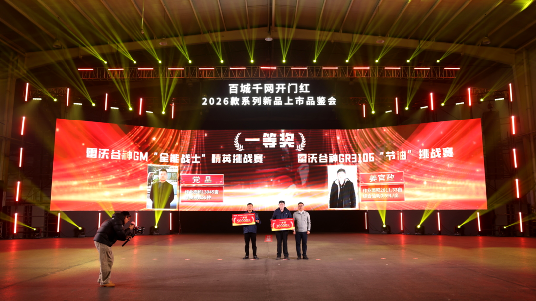 现场还举行了雷沃谷神GM/GR“全能·节油挑战赛”颁奖仪式。该赛事以真实作业环境验证产品性能,来自陕西的资深跨区机手党先生凭借全年跨区面积超过1.3万亩、收获55种作物的战绩,荣获GM“全能战士”挑战赛冠军。获奖机手纷纷表示,2025款产品在燃油经济性和作业效率上的提升切实为他们带来了更高收益。