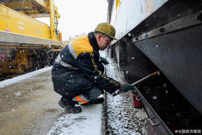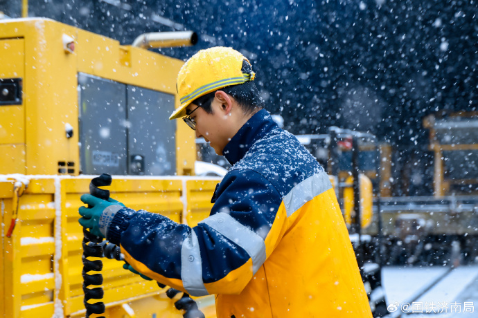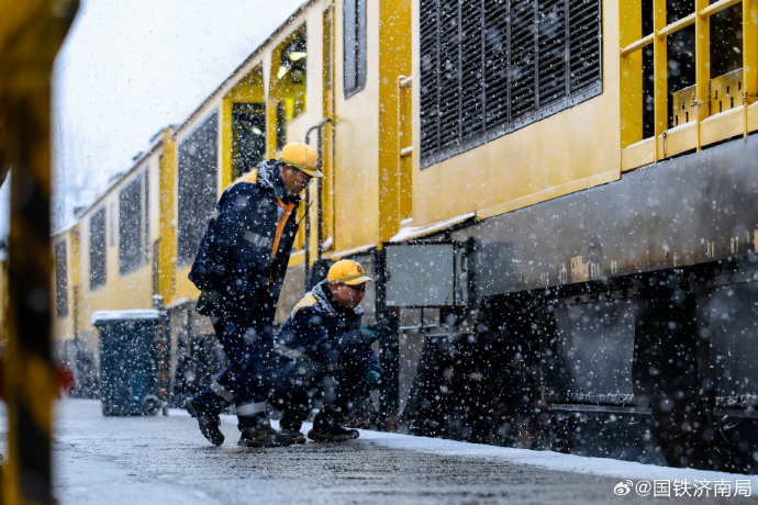 12月12日山东地区迎来大范围雨雪天气纷飞的雪花裹挟着寒意迅速覆盖齐鲁大地记者从国铁济南局获悉济南工务机械段全力排查设备隐患顶风冒雪坚守一线筑牢铁路运输安全防线图片来源国铁济南局微博大众新闻记者范薇通讯员王心孙一