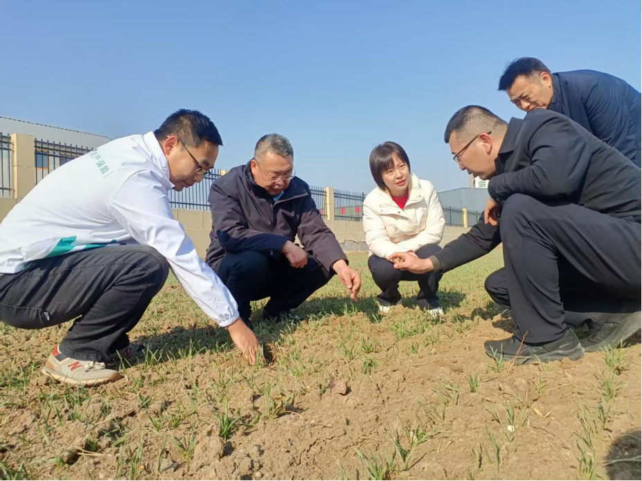 中国人寿财险泰安市中心支公司工作人员与农技人员到麦田察看小麦长势,现场指导种粮大户开展冬季田间管理。