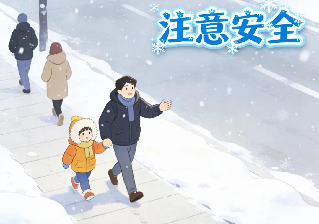 ◆ 安全过马路。过马路时,要观察路口车辆状态,确认车辆已完全停稳后再通过,避免因车辆制动距离延长或打滑发生碰撞事故。
