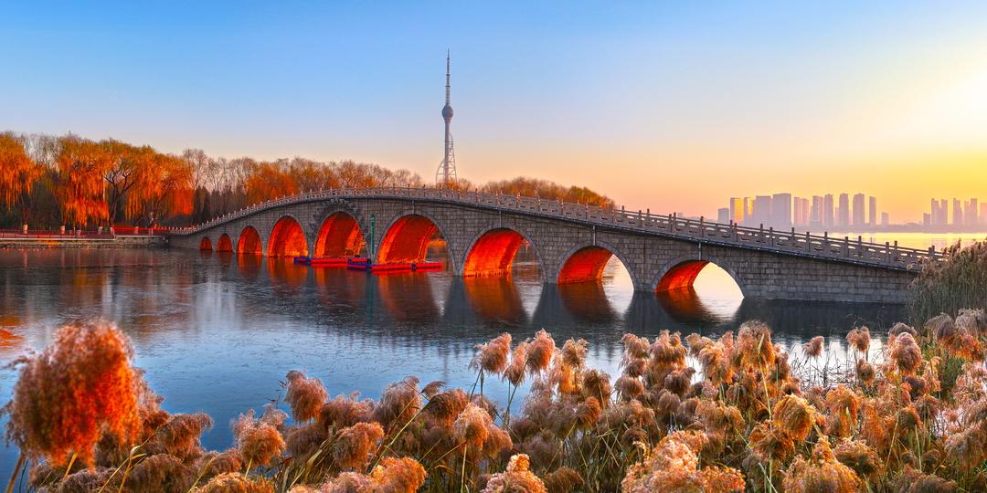奔腾不息的沂河流声如歌。“托蓝曳练漾微波,但见渔舟随处落”的“沂水拖蓝”成为著名的“琅琊八景”之一,历经沧桑,当年临沂城登高望远的最高处“平野台”早已不在,但类似于“平野晓霁”的景色却更具现代化。