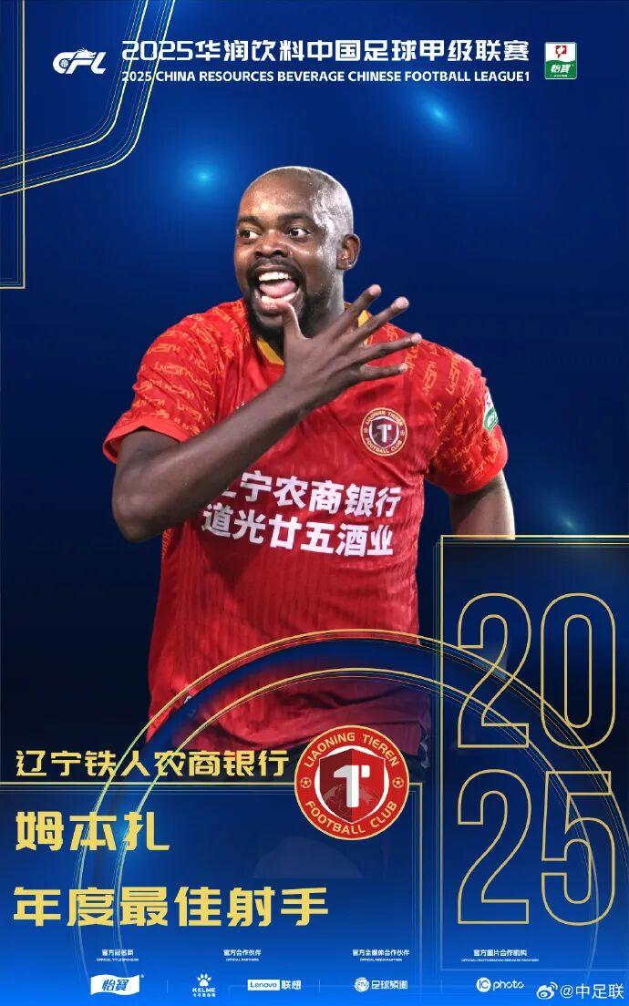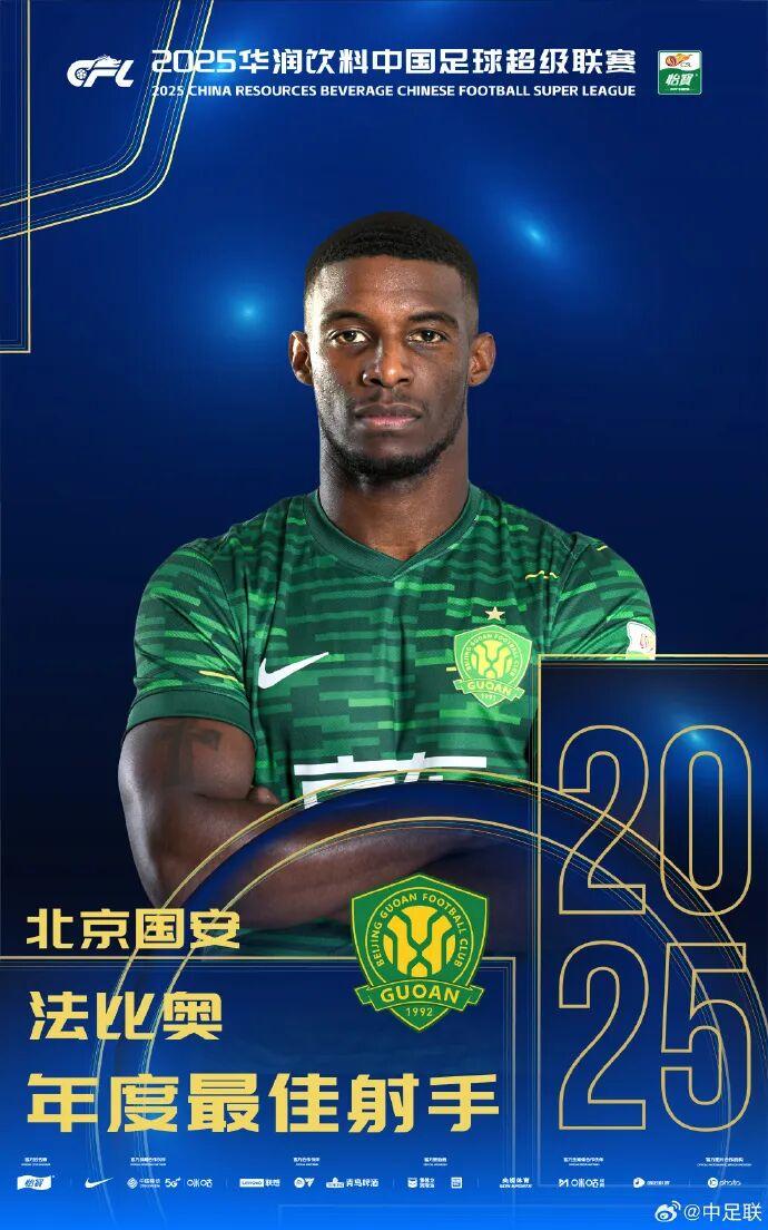 2025中国足球职业联赛颁奖:瓦科斩中超最佳球员