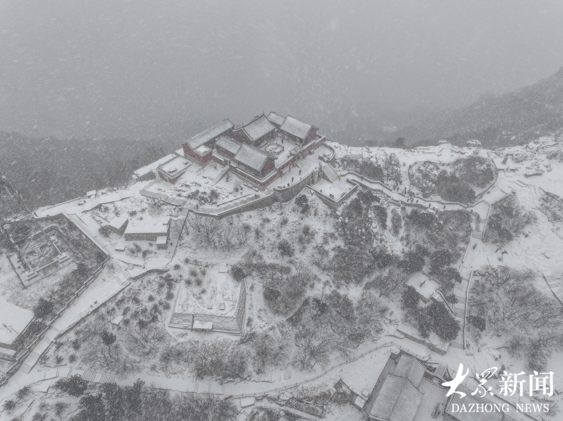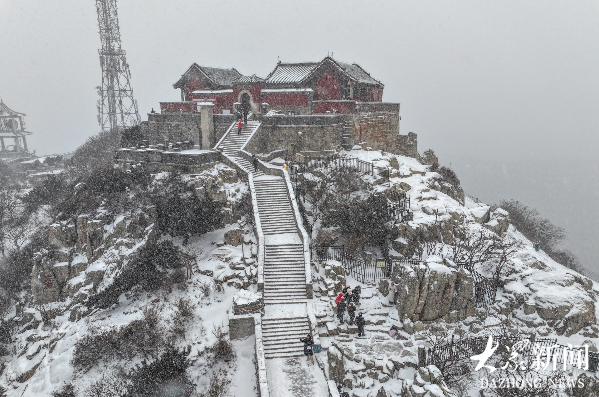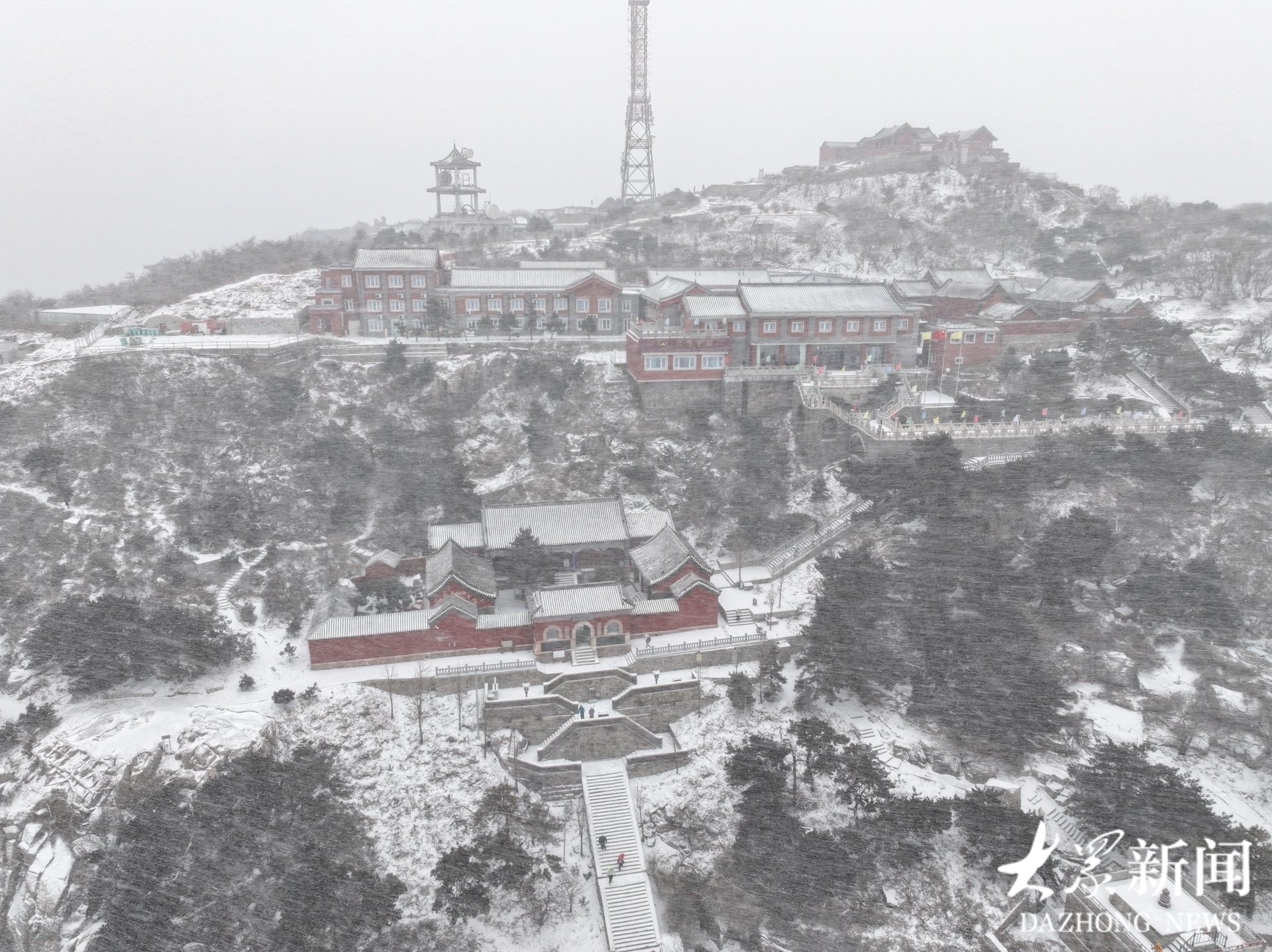 12月12日下午,泰山景区迎来今冬第一场明显降雪,满山银装素裹宛如水墨画作。