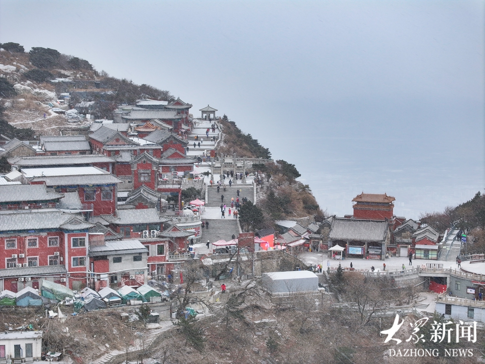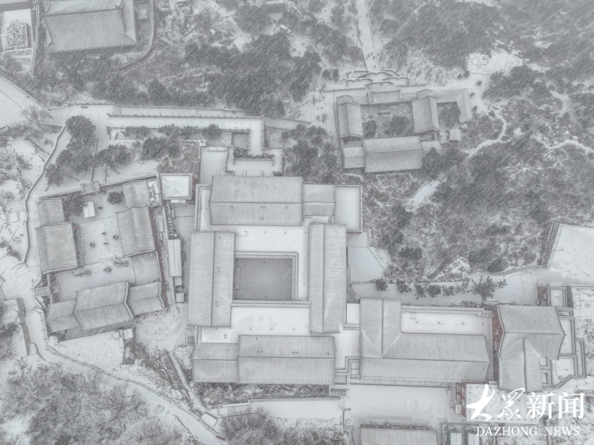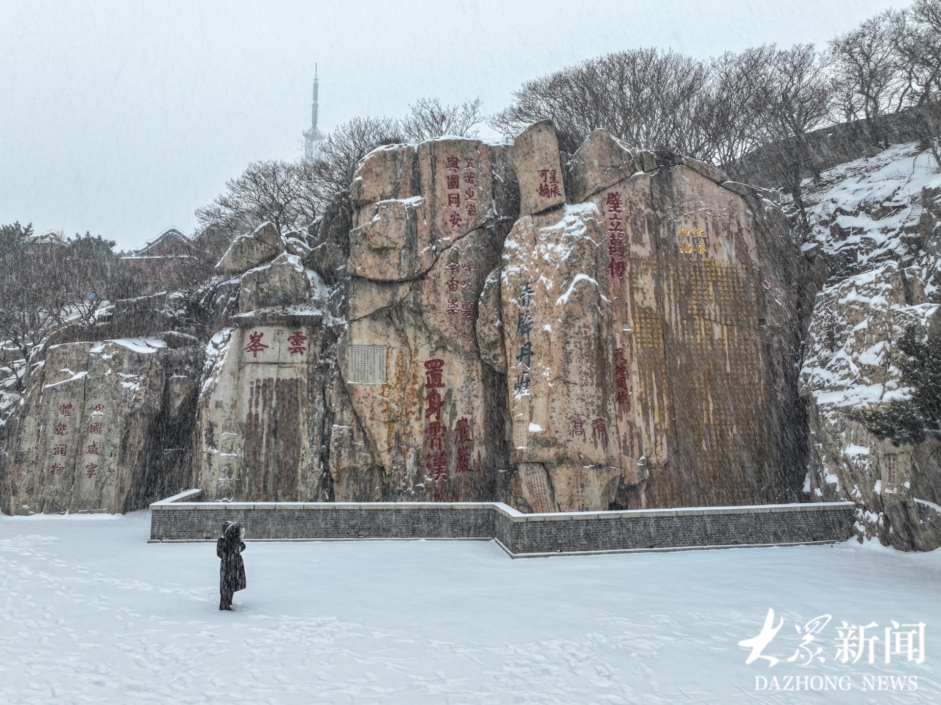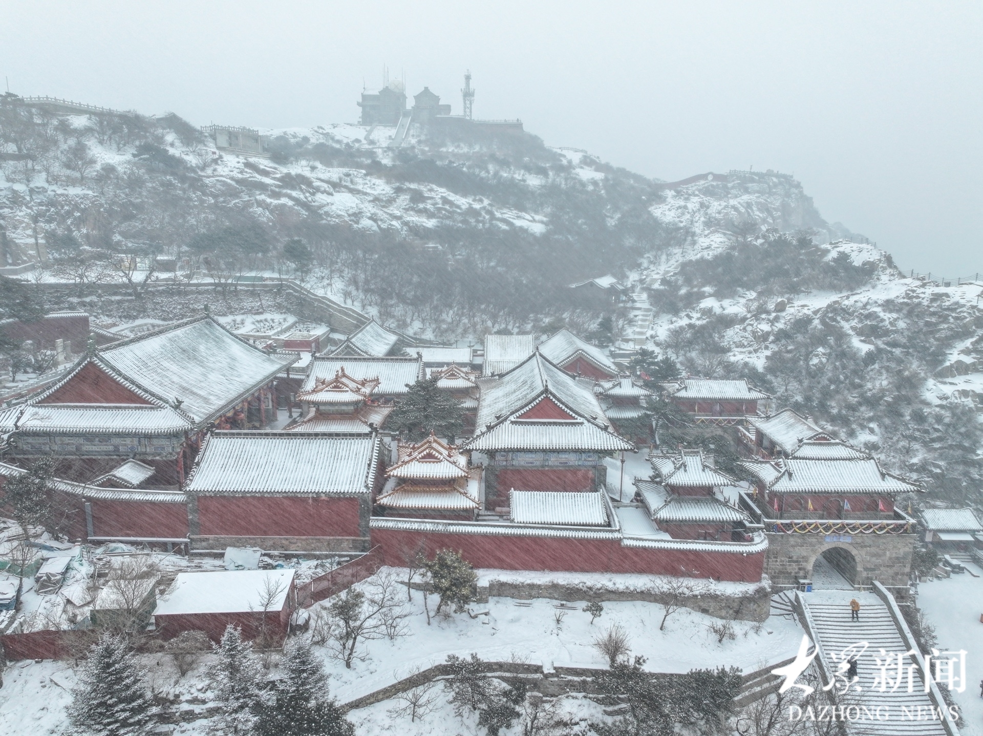 12月12日下午,泰山景区迎来今冬第一场明显降雪,满山银装素裹宛如水墨画作。