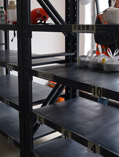 △其中一处取餐货架,有公司同学在此处等候餐食。图/王贯宇摄