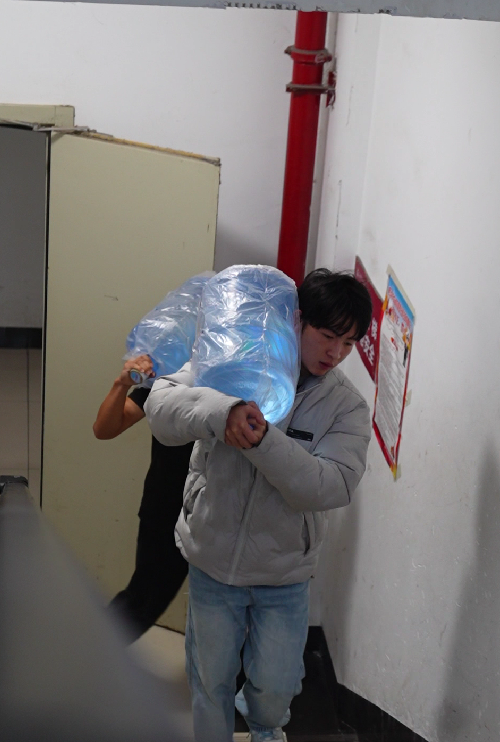 因楼层不同,每层配送水的配送价格也会发生变化,配送者的报酬会有几元调整。“每周平均配送一千多桶水、三千多单餐食。”