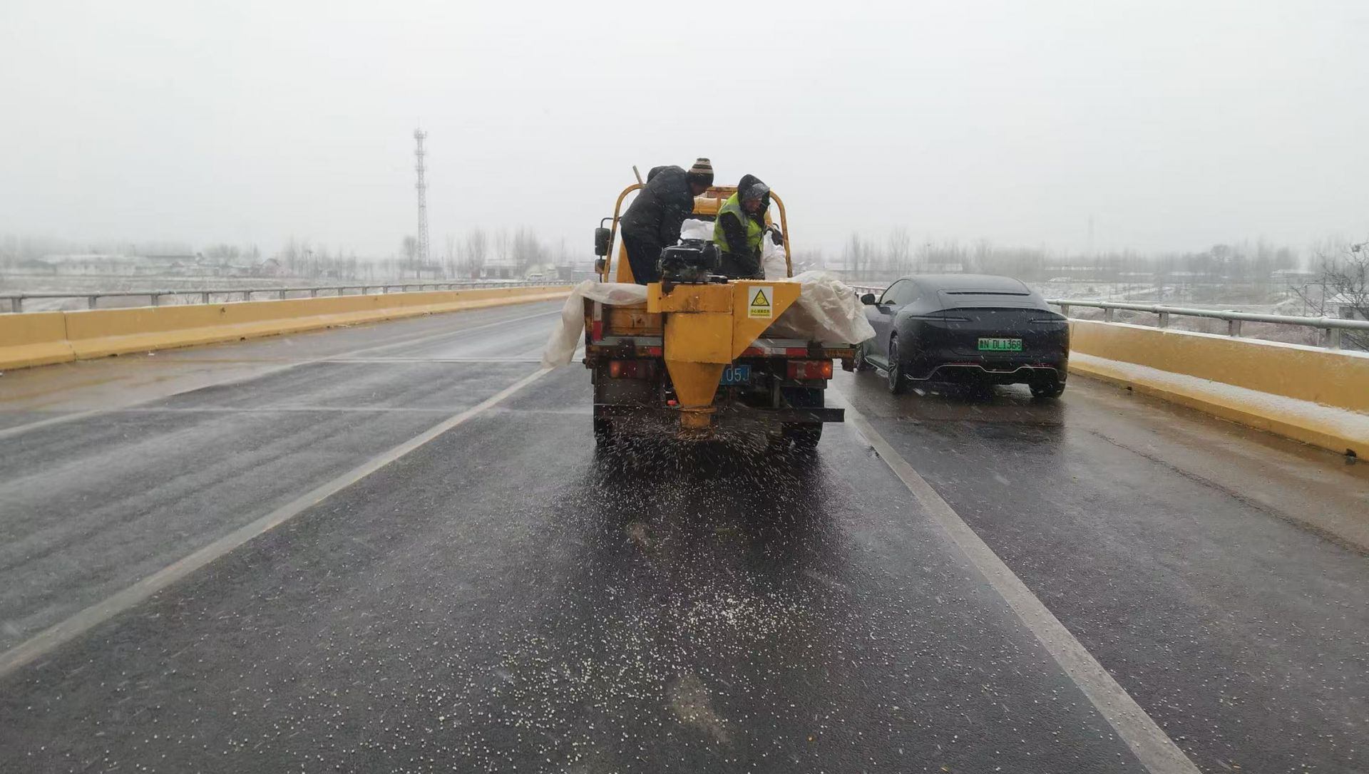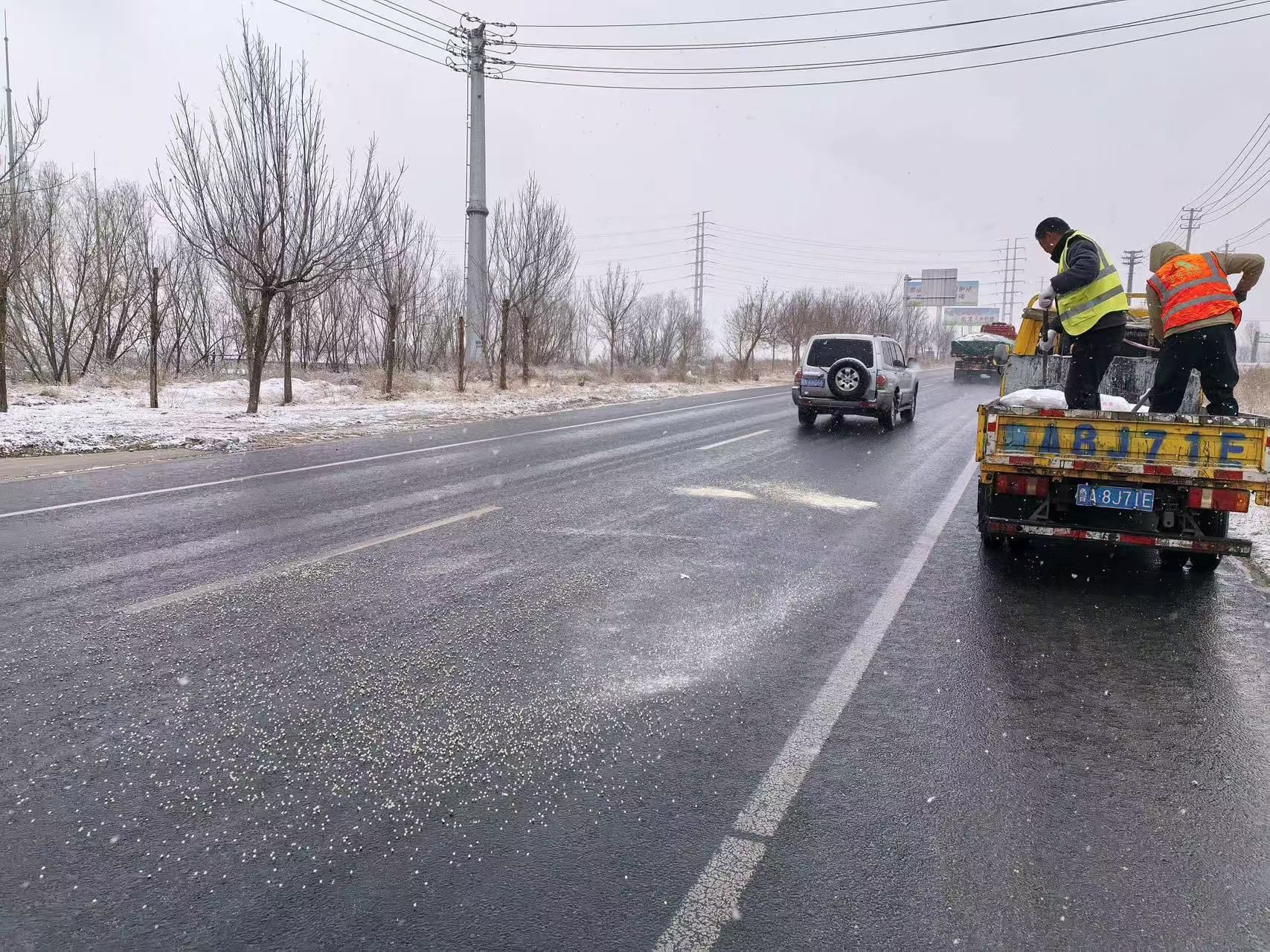 12月12日发生降雪后,根据降雪情况按照先重点部位后主线,先行车道后非机动车道顺序进行除雪作业,针对急弯、匝道、桥梁、陡坡等重点路段撒布融雪剂防止道路结冰,同时加强公路巡查与应急调度工作,时刻关注各条国省道通行情况,一旦出现积雪立即组织人员、机械设备开展除雪防滑作业,全力保障所辖公路安全畅通。