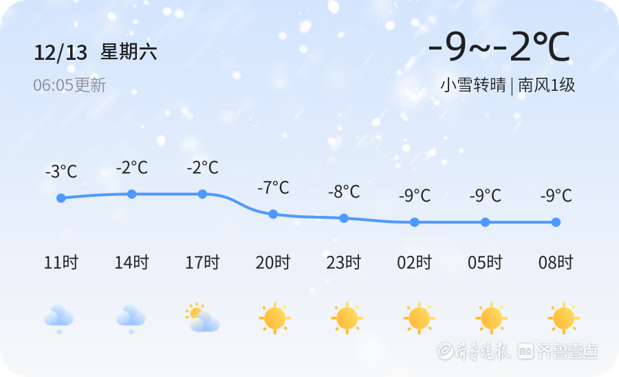 今天是12月13日,星期六,农历十月廿四。泰安市迎来降雪天气,气温在-9℃到-2℃之间,风力较小,空气质量良好。目前,泰安市气象台已发布暴雪黄色预警信号,提醒市民注意防范。