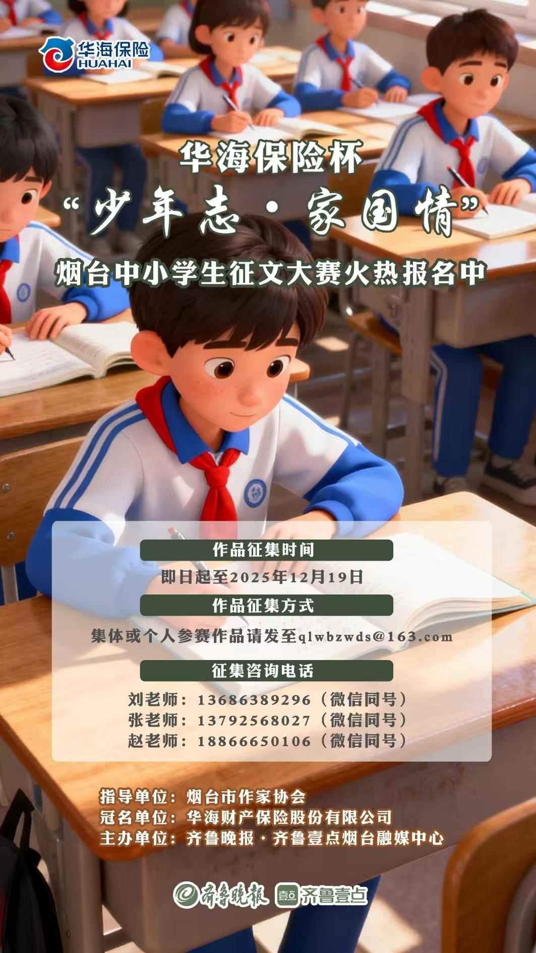 本次大赛由华海财产保险股份有限公司冠名,烟台市作家协会指导,齐鲁晚报·齐鲁壹点烟台融媒中心主办,旨在引导青少年将个人成长与国家发展、家乡建设紧密融合,以文字抒发情怀,树立远大志向,抒写家国情怀。大赛自启动以来,受到了社会各界的广泛关注,吸引了众多青少年积极参与。截至目前,大赛已收到全市中小学生优秀作品300余篇,投稿数量仍在持续攀升。