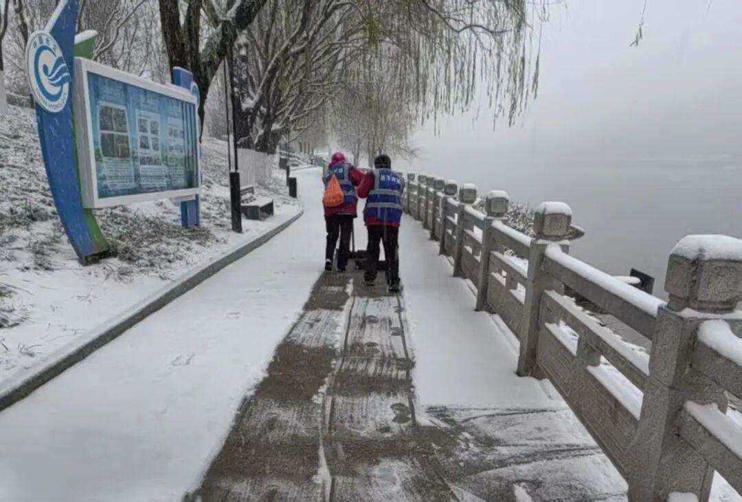 区应急局加强值班值守,密切关注降温雨雪天气预警信息,做好应急处置准备和应急物资保障工作。区水务局立足水务职能,聚焦河湖及周边区域安全,备足除雪工具、防滑材料等关键物资,实行专人负责、健全快速响应流程,及时清除河道周边积雪。