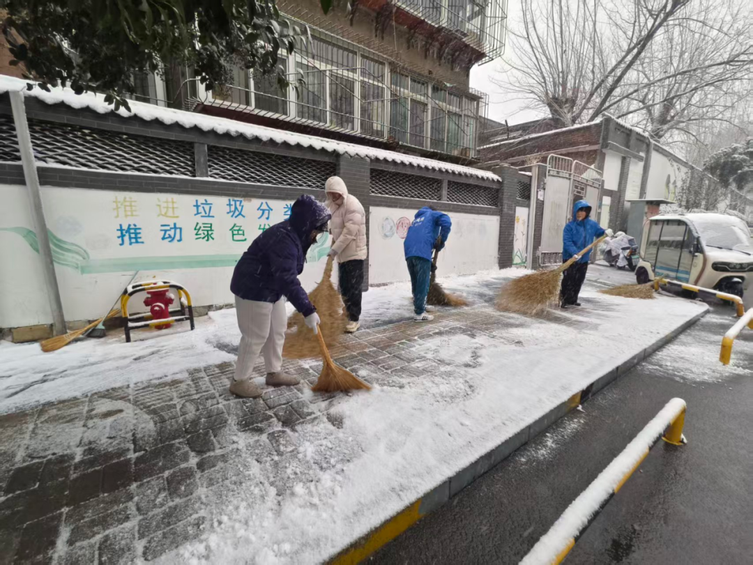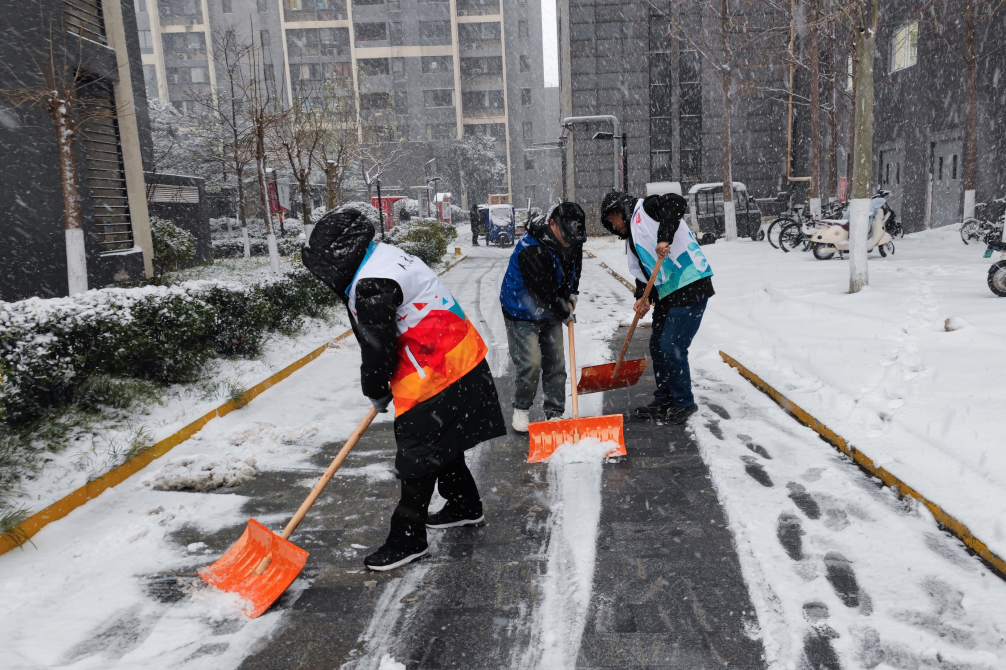 文化东路街道迅速行动,组织开展清雪除冰安全保障工作。辖区物业、沿街商户落实“门前五包”责任,志愿者也纷纷出动,及时铲冰除雪,开辟“暖心路”。