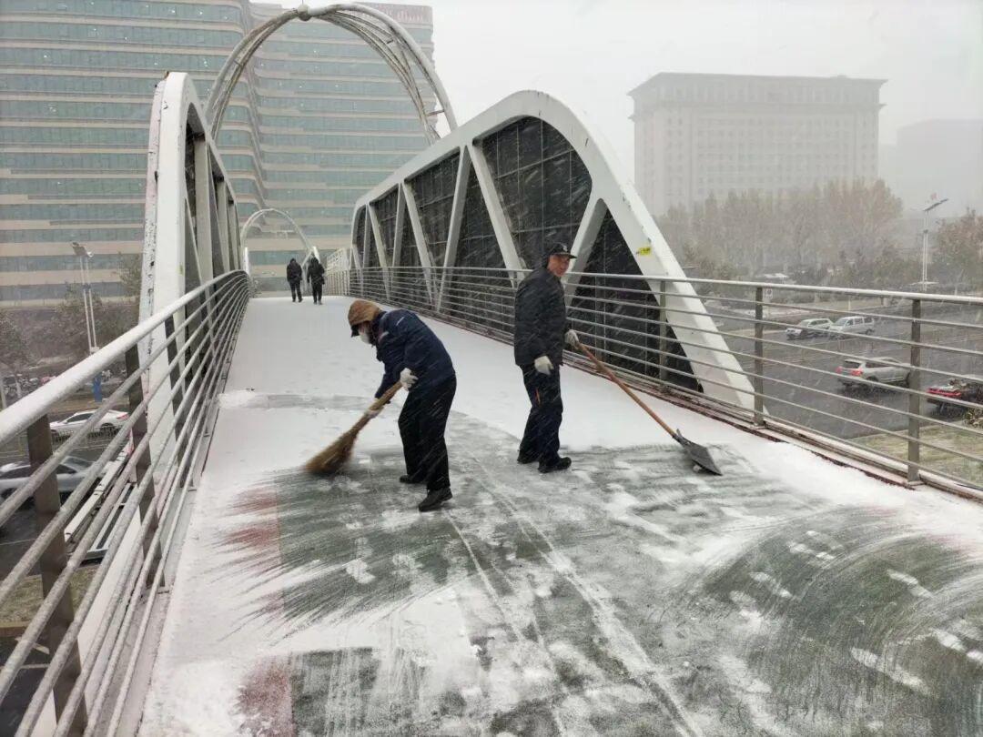 区市政工程服务中心组织人员对历下区10座人行过街天桥进行除雪清理、铺设防滑垫等应急响应措施,确保行人安全,消除安全隐患。