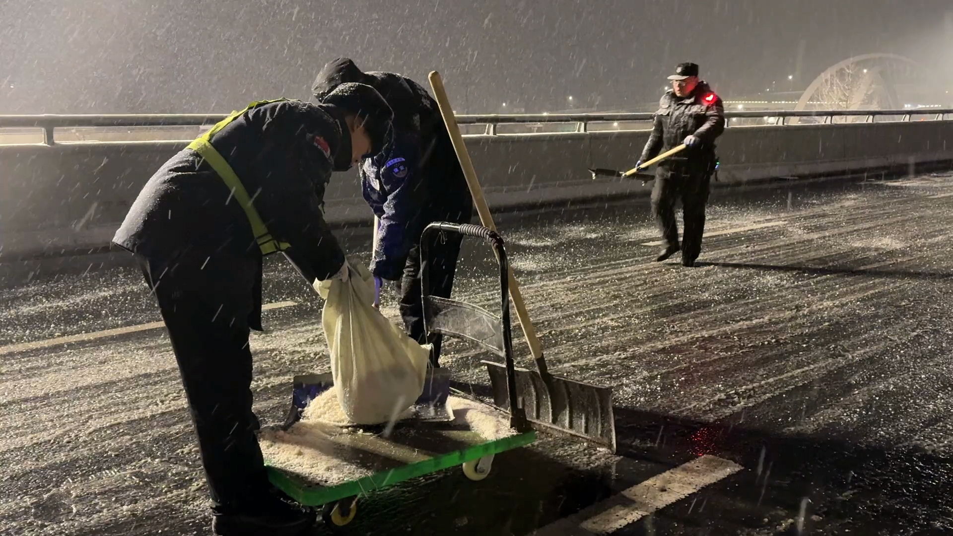 12日夜间8时起,全面展开扫雪除冰工作,组织大型雪滚车35台、大型雪铲车6台、小型雪滚车、雪铲车27台,分为12个组团按照“先主后次”原则对主次干道、桥梁涵洞、坡道弯道、车站、医院等重点区域积雪进行昼夜不间断机械化清扫作业,快速打通城市交通主干道;人工清扫精准补位,组织城管队员800 余名、环卫工人1900余名利用小型除雪设备、除雪工具对辅路、平交道口、人行道积雪进行人工清扫;科学防控防范结冰,根据实时路况及气温变化,合理安排融雪剂布撒工作,有效降低路面结冰风险;联动发力覆盖社区,积极发动物业企业145家,累计出动扫雪除冰人员1200人次、各类清雪除冰车辆100余台,全力推进住宅小区内积雪清理,保障居民小区出行安全。