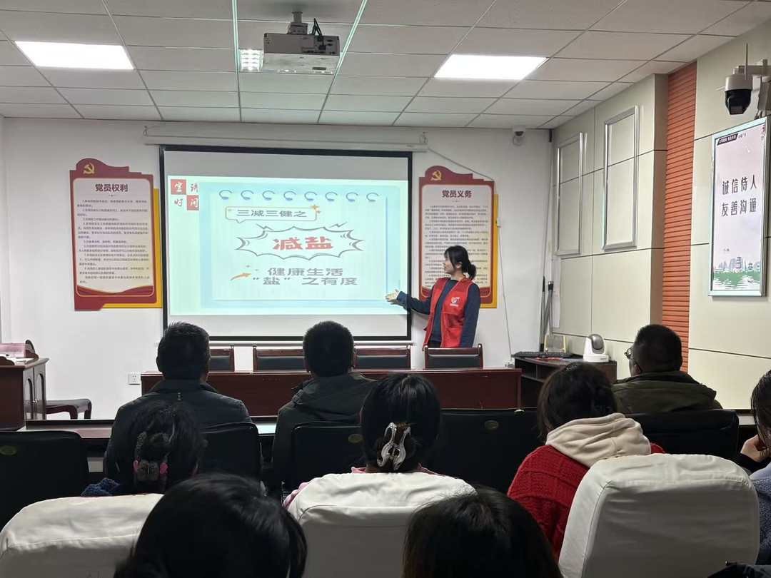 活动中,宣讲员朱艳琳通过观看视频方式学习食盐摄入相关知识,精准覆盖不同人群健康需求。随后讲解了高盐饮食危害,强化居民控盐重视度。还向居民传授家庭减盐小技巧,讲解低钠盐选用、烹饪控盐方法及食品钠含量识别要点,同步引导居民养成低盐低脂、戒烟戒酒、适量运动的健康生活方式,全方位提升居民健康素养。