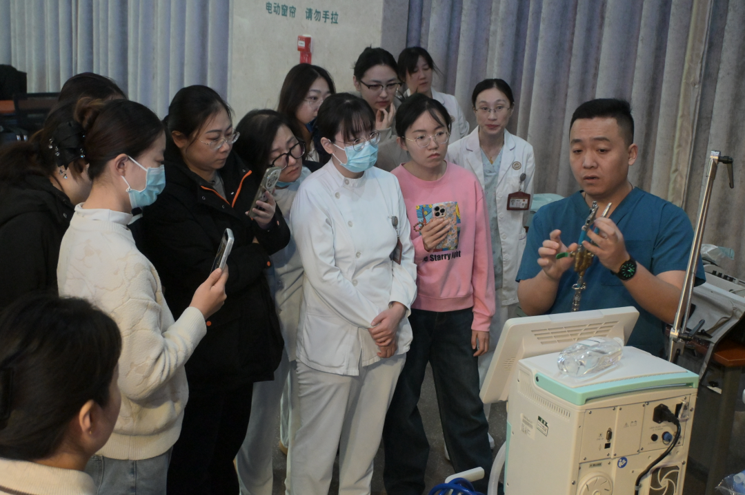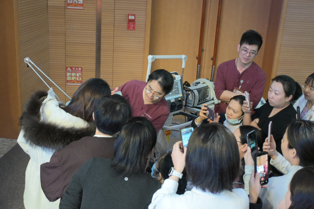 在工作坊环节,医院呼吸治疗师庞流芳、段飞、徐琳静、王启、郭祥勇、卞中攀、刘伟明带领学员分组开展“呼吸机基本参数设置”“呼吸机管路安装”“高流量氧疗技术”“冰毯机使用技术”实操训练,强化设备使用与应急处理能力。培训进行统一技能考核,实现从知识输入到实践输出的闭环转化,巩固了培训成效。