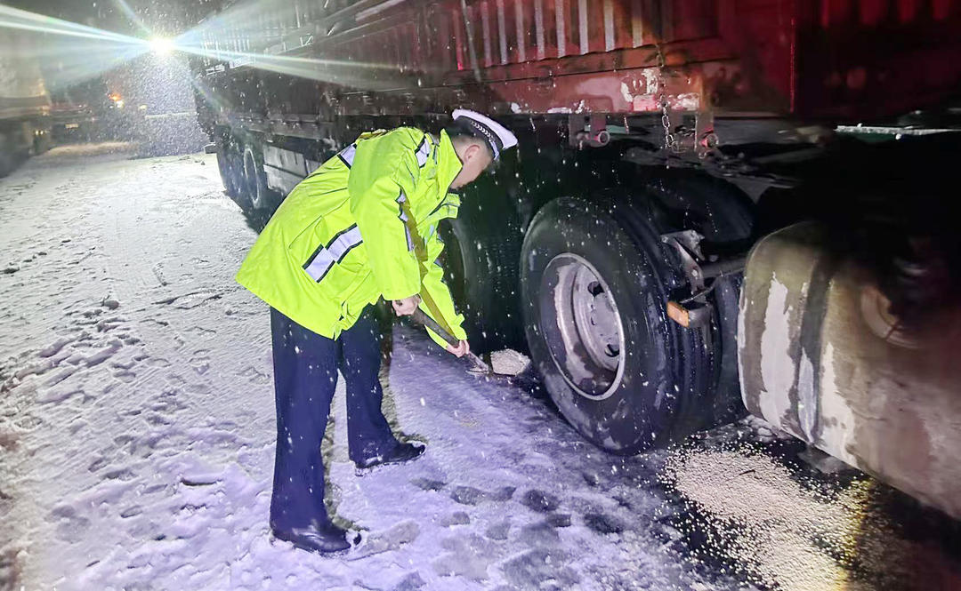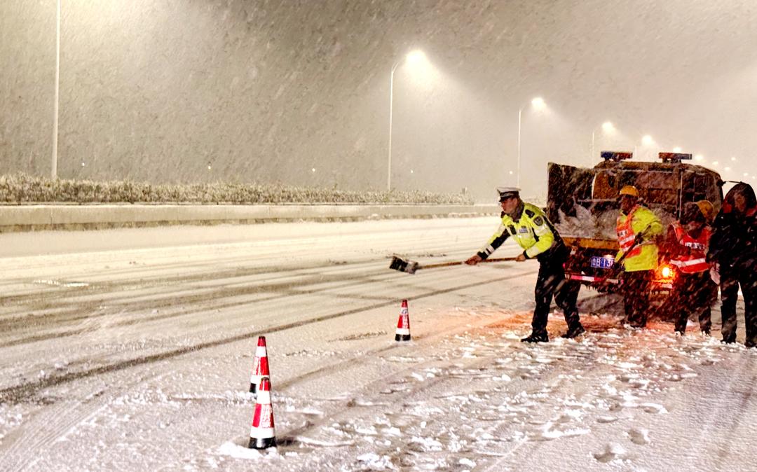 自昨晚8时起,青岛市公安交管部门全面强化路面巡检与视频巡查,实时掌握国省道、高速公路、高架路及进出城主干道通行状况,加强与气象部门联动,密切关注天气变化,动态调整警力部署与管控措施,扎实做好各项应急准备。夜间10时至凌晨2时雨夹雪天气期间,各辖区大队进一步加大巡逻密度与管控力度,在易结冰积雪路段、高架桥匝道、弯道、立交枢纽等重点区域设置固定岗,通过亮警灯、鸣警笛提醒过往车辆减速慢行,并在积雪路段提前抛撒防滑沙,加强指挥疏导。高速公路大队增派警力上路,备足融雪剂、警示标识等物资,保障应急处置需求。同步采用“警车巡+视频巡”结合的方式24小时不间断巡查,重点排查桥梁、长大下坡等易结冰路段,联动养护部门开展除雪作业,协调救援力量前置部署,确保信息共享、高效配合。同时,交管部门严格落实警情快速处置机制,对信号灯故障、交通事故、车辆故障及群众求助等各类情况做到第一时间响应、高效处置,最大限度减少恶劣天气对交通运行的影响。
