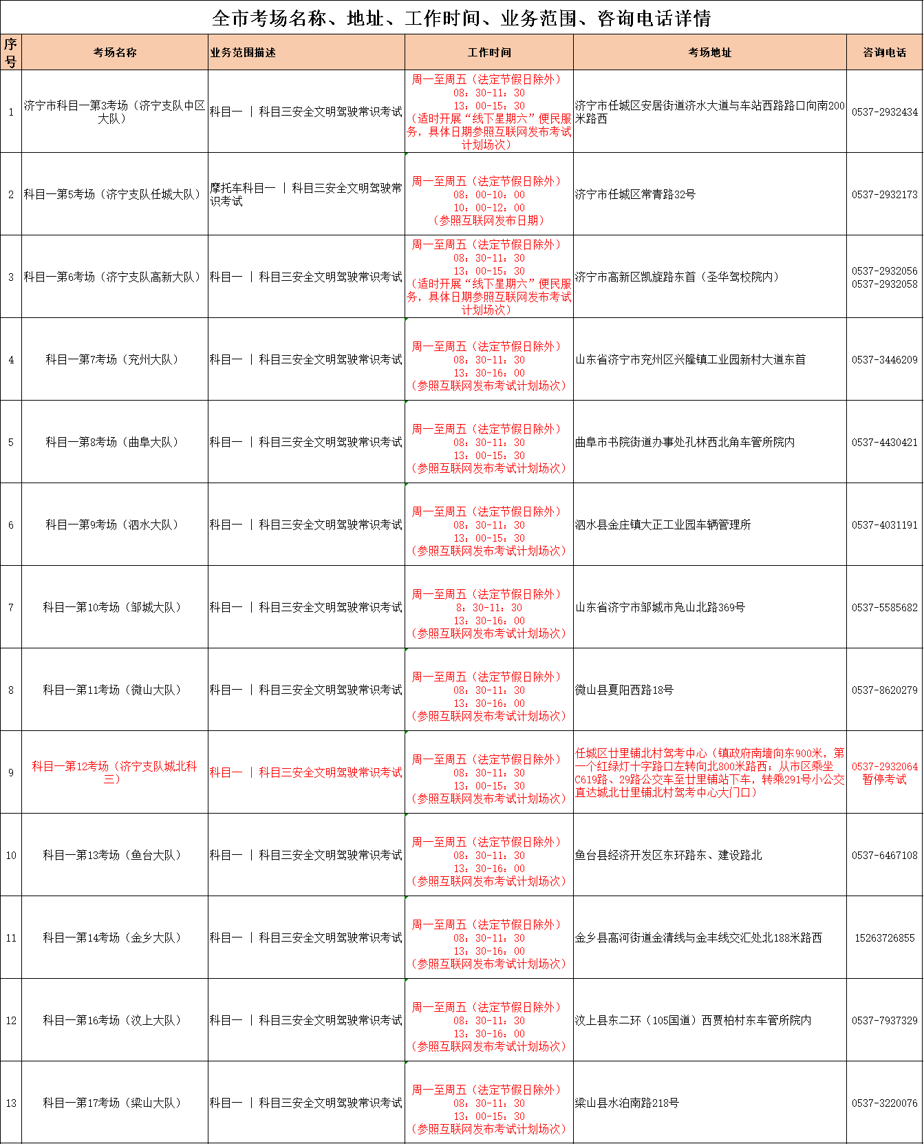 大众网记者刘宏蕾济宁报道12月12日济宁车管所发布全市考场名称地址工作时间业务范围咨询电话详情具体如下