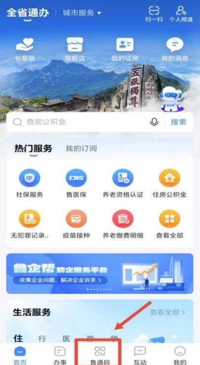 申请渠道选择“鲁通码”的乘客市民,应在“爱山东”APP中选择“鲁通码”模块——城市选择“济南市”后,出示二维码,刷码乘车。