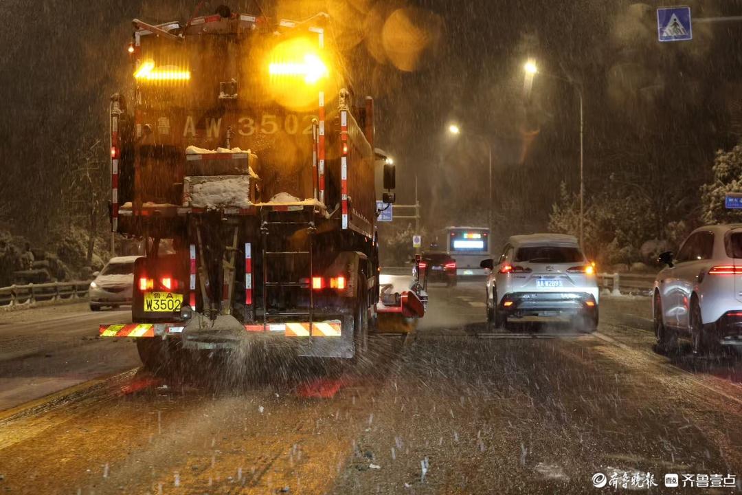 12月12日,济南迎来了今冬首场降雪。雪花纷飞,给城市增添冬日韵味的同时,也给交通出行带来挑战。为保障市民出行安全与道路畅通,交警、环卫等部门迅速行动。