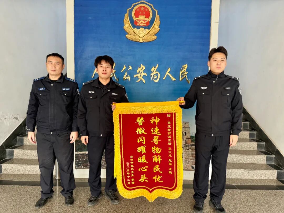 近日,市中分局税郭派出所收到了一份来自济南的“特殊礼物”——一封感谢信和一面印着“神速寻物解民忧 警徽闪耀暖心头”的锦旗。原来,济南的苏女士前些天来枣庄参加亲友喜宴,期间孩子的电话手表不慎遗失。税郭派出所民警接到苏女士的求助后,迅速赶往手表定位地点,找到了遗失的儿童电话手表。由于苏女士已返回济南家中,为节省时间与成本,民警贴心将手表快递寄往其家中。