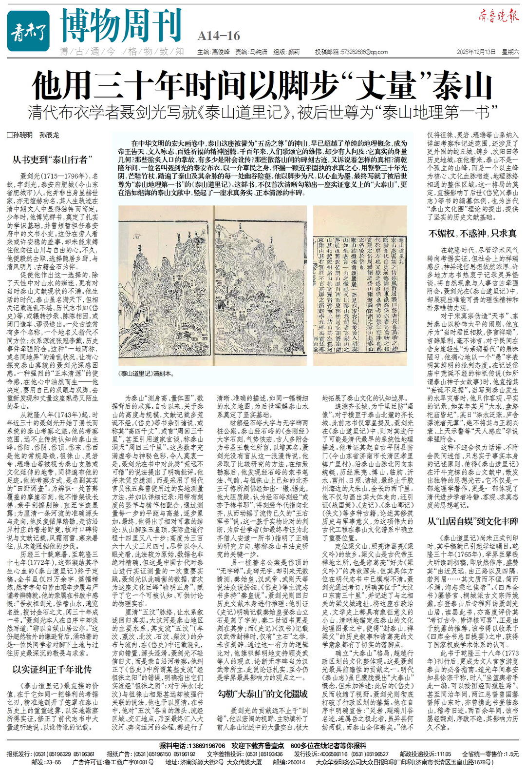 清代布衣学者聂剑光用30年时间写就“泰山地理第一书”