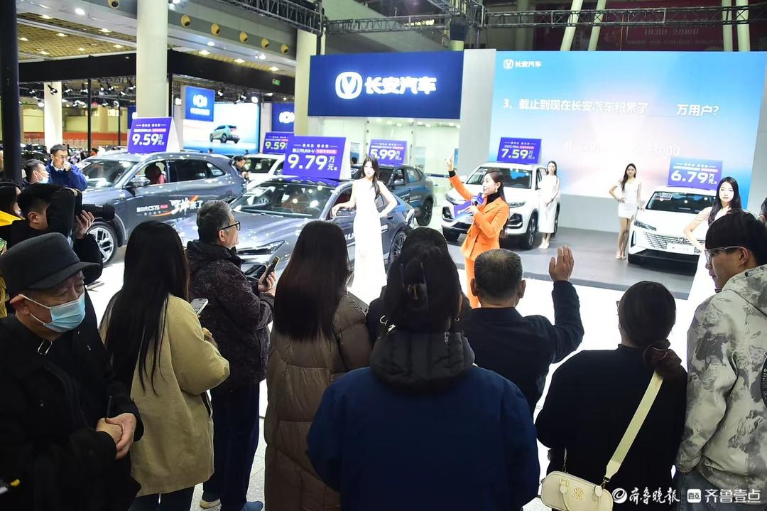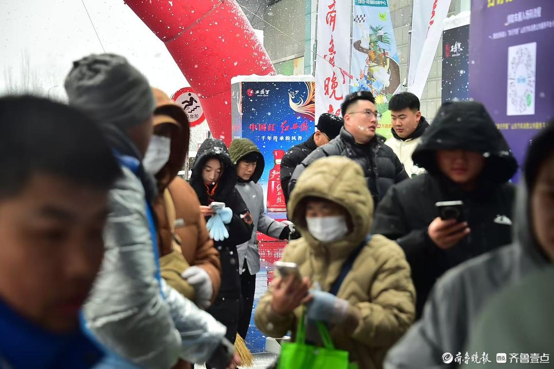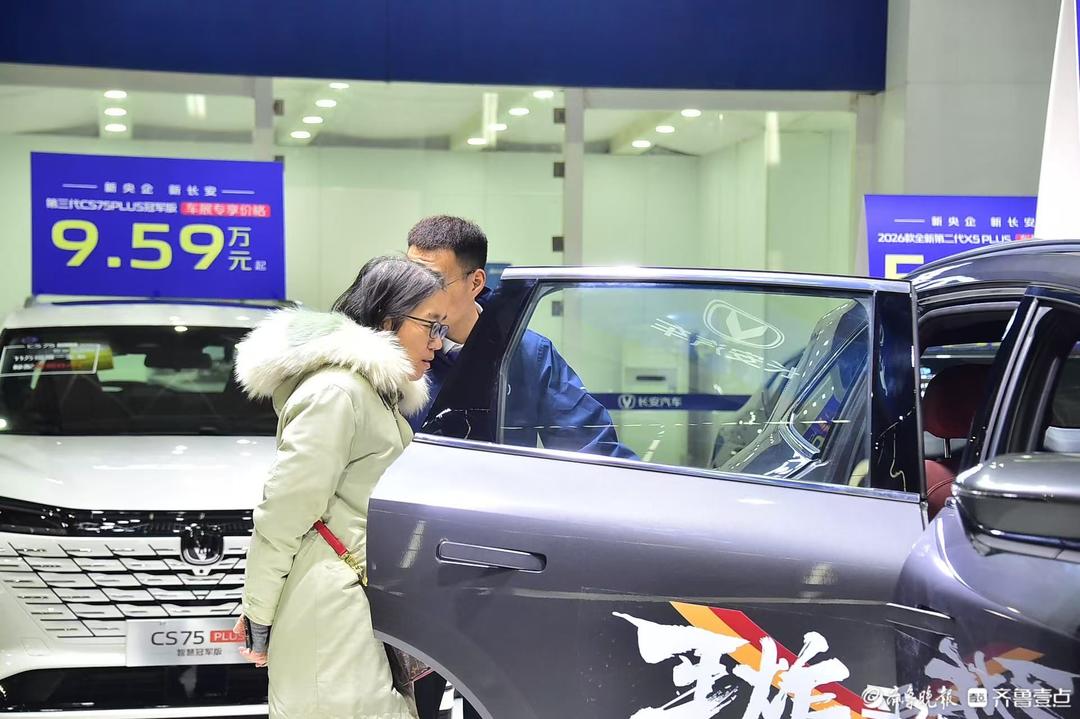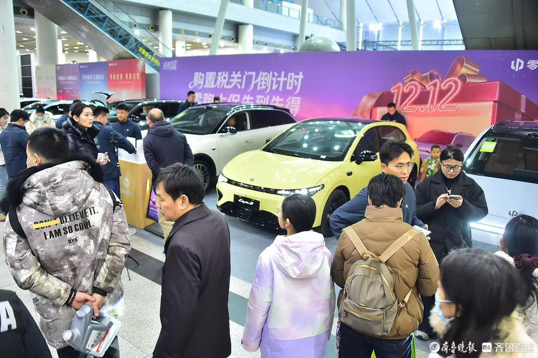 尽管户外寒风凛冽、雪花纷飞,但展馆内却是一派热火朝天的景象——近万平米展区内人头攒动,咨询声、洽谈声此起彼伏。近50个汽车品牌的新能源展台前围满了看车市民,销售人员忙得不可开交,齐鲁特色好物展区也人气高涨,一场“雪天里的消费狂欢”正式上演。