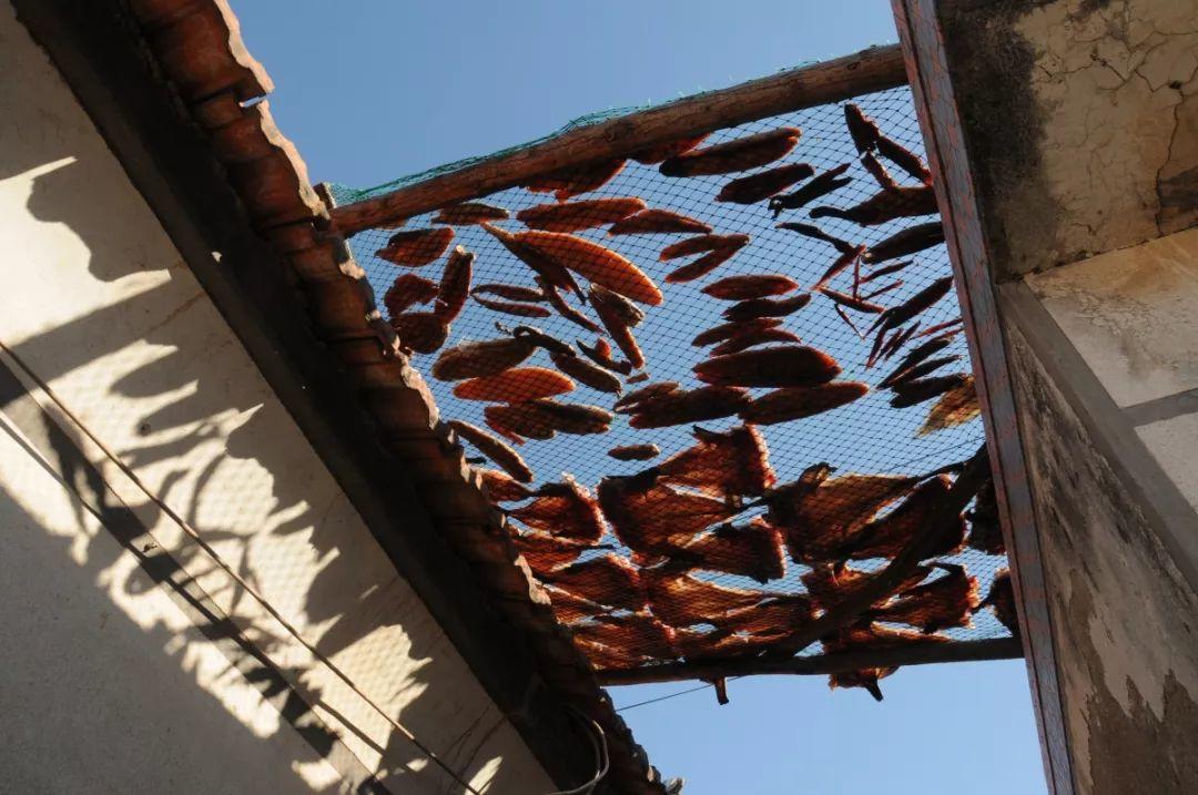 网笼挂在向阳之处,让每条洗好、腌好的鱼尽情接受阳光和微风的洗礼。晒鱼,不仅仅是脱干水分达到长时间保存而不变质那么简单。在盐分的作用下,鱼肉中的蛋白质逐渐分解,释放出游离氨基酸,这是构成鲜味的关键成分;微生物在鱼的体内发酵,促进蛋白质分解,产生更多的鲜味物质;鱼肉中的脂肪在腌制和晾晒过程中发生氧化和水解反应,增强整体风味;盐不仅能抑制细菌生长,防止鱼肉变质,还具有提鲜效果,能通过渗透压作用使鱼肉脱水,让鲜味物质更加浓缩。