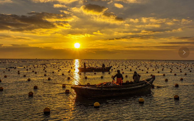 城区的海滨有一处简易的小渔码头,每天停泊着在近海往返作业的捕捞、养殖渔船。每年晒海鱼的季节,这里便成为洗海鱼的热闹熙攘之处。