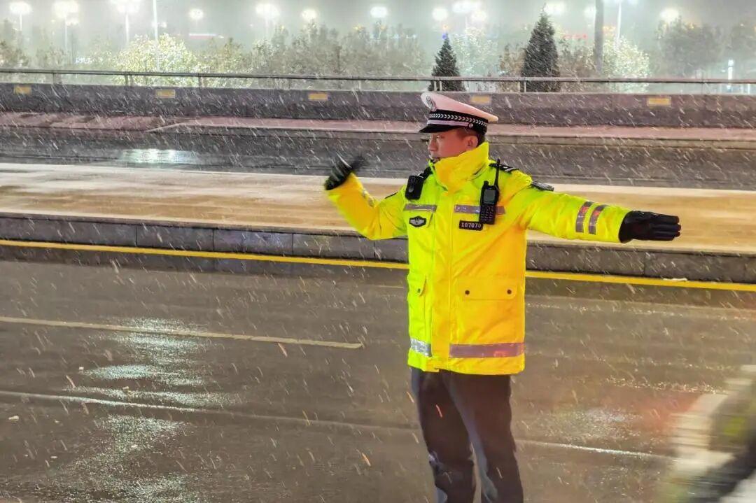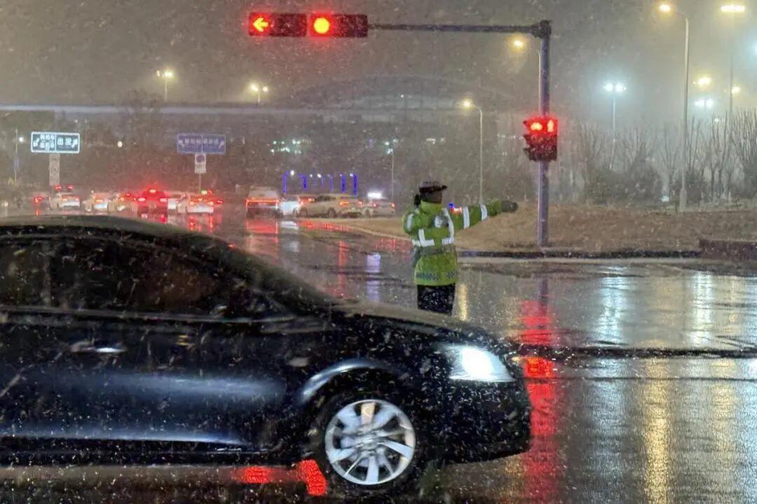 风雪中的那抹“荧光绿”是路面最温暖的风景线。山东机场公安交巡警支队将持续关注天气变化,加强风险预警和应急调度,加大路面巡逻和道路管控力度,确保强降雪时段机场道路交通秩序安全有序,用有力的作为为广大群众平安抵离保驾护航。