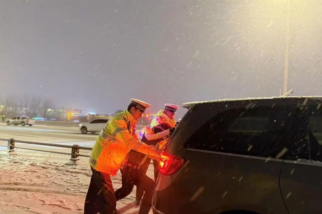 支队强化多种方式随时响应人民群众报警求助,路面巡逻警力开通救援通道,对打滑被困车辆提供牵引或推车助行、紧急救援等服务,全力守护群众平安出行,目前已帮助群众63人次,赢得了纷纷点赞。受助司机王先生说:“这么冷的天,交警同志还在外面执勤,看到他们在,我们心里就踏实多了。”