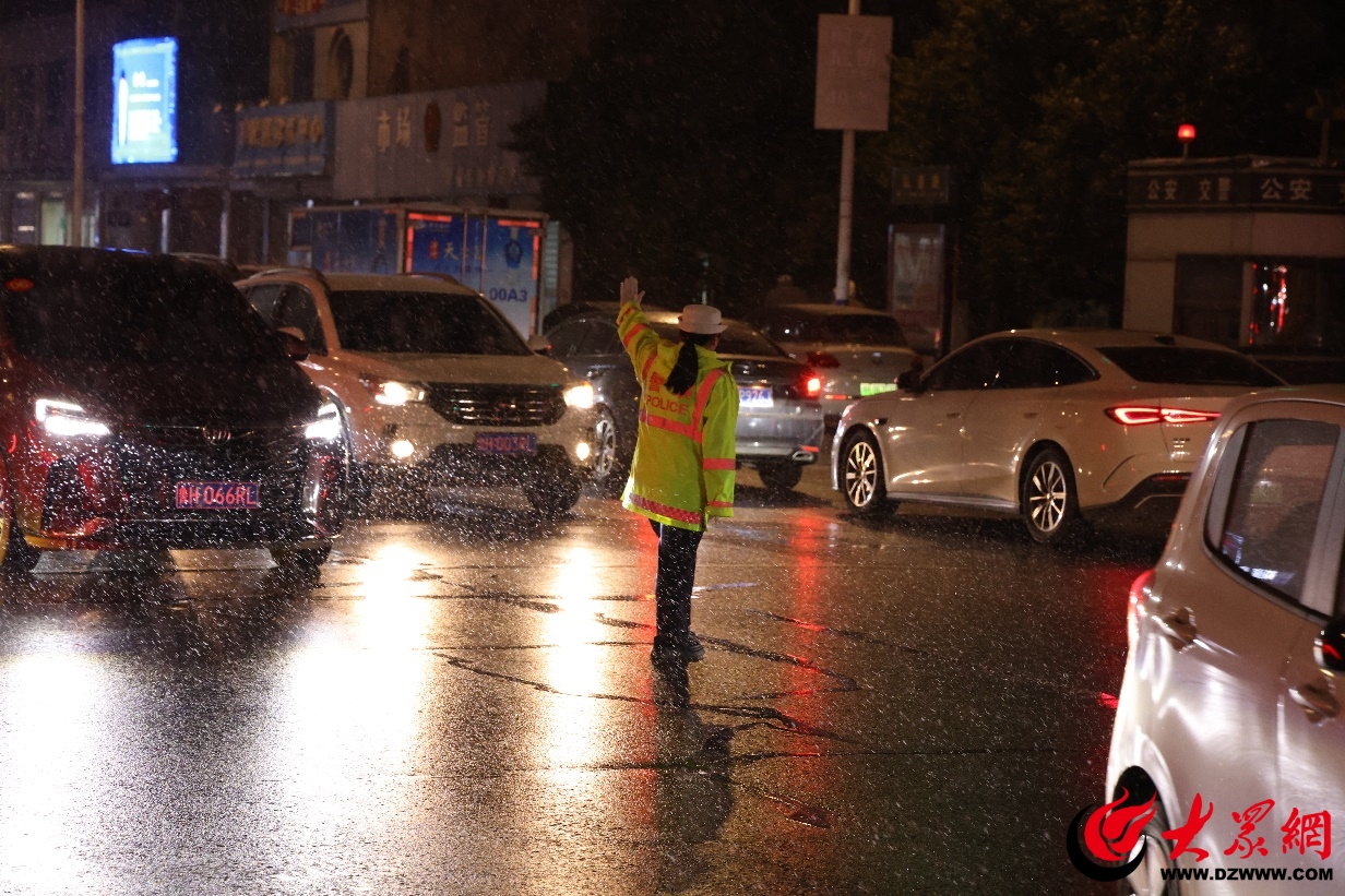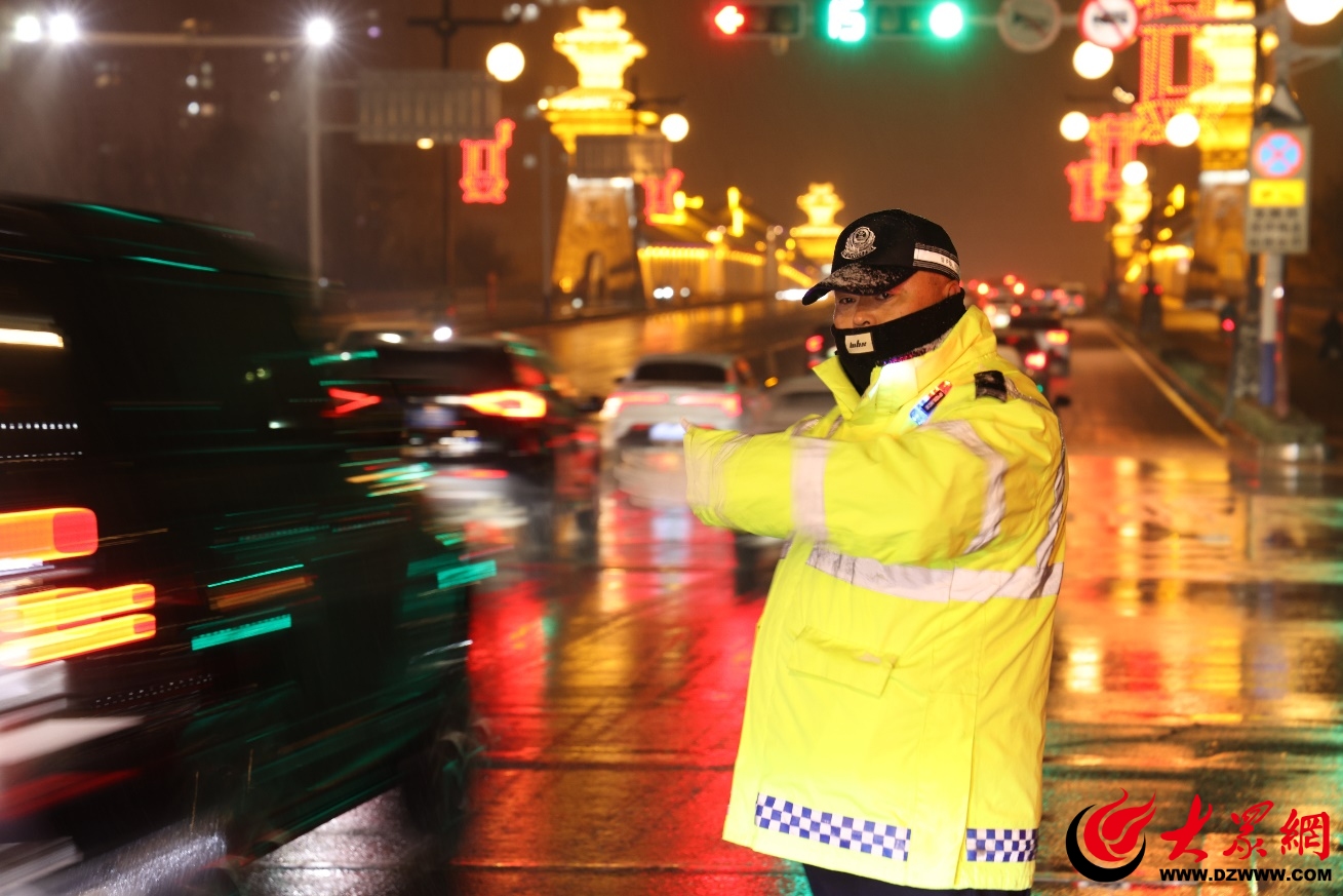 曲阜公安交管坚守一线 全力保障雪雨天路面交通安全