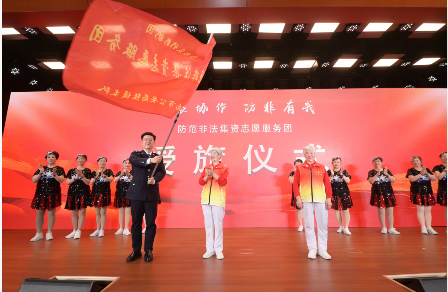 “莫道桑榆晚,为霞尚满天”,活动中,防非反诈奶奶团用“唠家常”的温度、“接地气”的节目,让远离非法集资观念深入人心。现场向防非反诈奶奶团授予了“防范非法集资志愿服务团”旗帜,这一举措不仅进一步发挥了这支群众队伍在社区宣教中 “邻里守望” 的独特作用,更标志着社会力量深度参与非法集资综合治理工作迈出了坚实一步,为构建全民防非反诈格局注入了新活力。