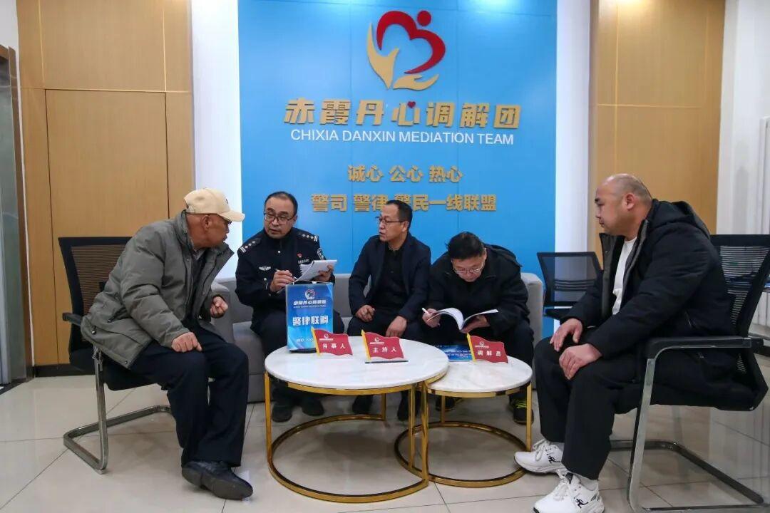 “赤霞丹心”的底色是红色,力量源泉是党建。调解团由派出所党支部牵头,联合街道办、司法所、律所等单位,吸纳退休法官、老民警、热心群众等28名专业力量,构建“支部引领、多元参与”的协同体系。党员带头干。设立“党员调解示范岗”,党员骨干包案包片,将矛盾化解量、群众满意度纳入党员积分考核,让“调解一线”成为锤炼党性的“练兵场”;联席聚合力。每月召开党建联席会,联合共建单位研判风险、共商对策,把“单打独斗”变成“集体作战”;品牌树形象。以“赤霞”喻赤诚,以“丹心”映初心,让“有纠纷找‘赤霞丹心’”成为辖区群众的共识。