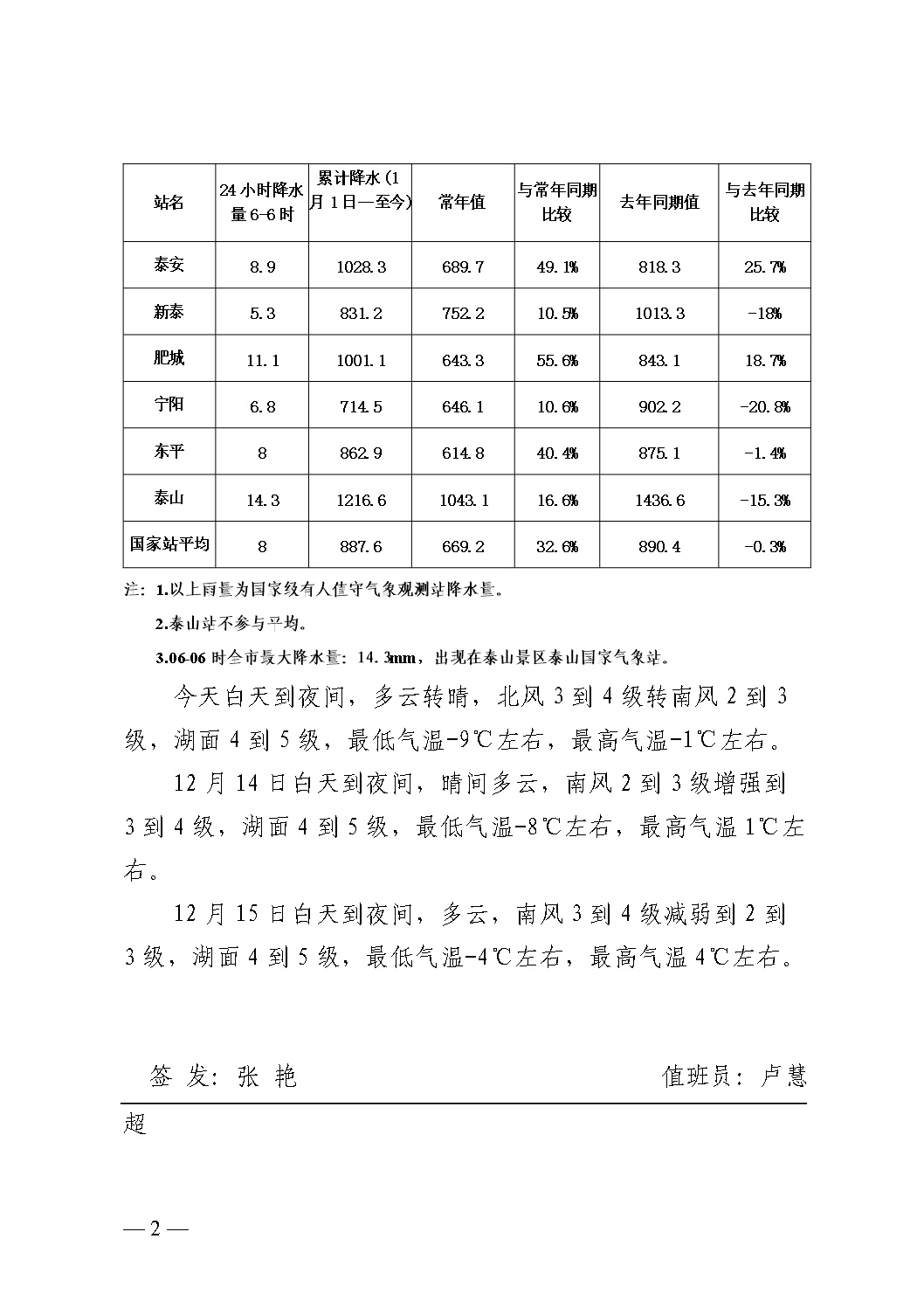 12月15日白天到夜间,多云,南风3到4级减弱到2到3级,湖面4到5级,最低气温-4℃左右,最高气温4℃左右。