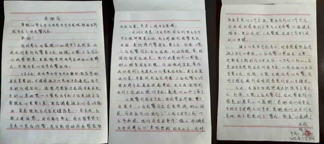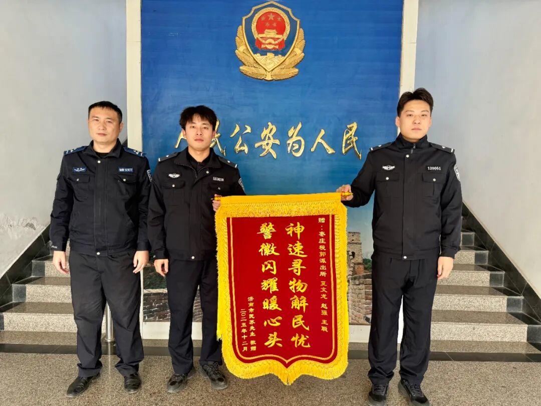 近日,枣庄市公安局市中分局税郭派出所收到了一份来自济南的“特殊礼物”——一封感谢信和一面印着“神速寻物解民忧 警徽闪耀暖心头”的锦旗。原来,济南的苏女士前些天来枣庄参加亲友喜宴,其间孩子的电话手表不慎遗失。税郭派出所民警接到苏女士的求助后,迅速赶往手表定位地点,找到了遗失的儿童电话手表。由于苏女士已返回济南家中,为节省时间与成本,民警贴心将手表快递寄往其家中。