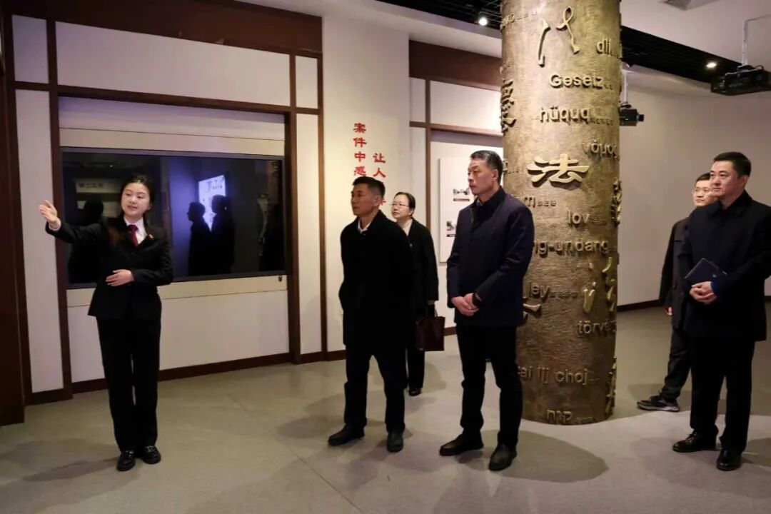 考察组一行参观了滕州法院审判史迹展览馆、人大代表联络议事厅,通过现场观摩、听取介绍、互动交流等形式,深入了解滕州法院在市人大支持指导下设立“人大代表联络议事厅”,构建“代表履职、接受监督、汇聚民意、工作协同”四位一体平台,建立“人大+法院”“代表+法官”工作机制,推动基层社会治理现代化,将全过程人民民主融入司法实践工作情况。
