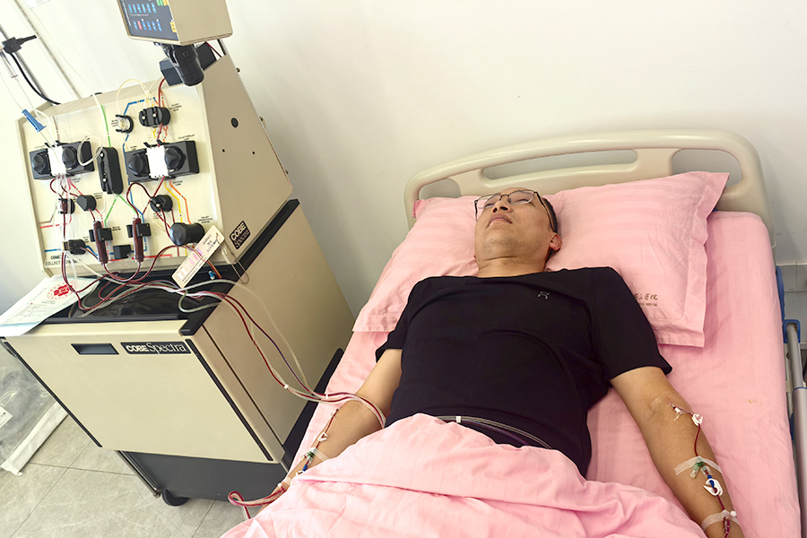 赵坤正在进行造血干细胞混悬液采集
