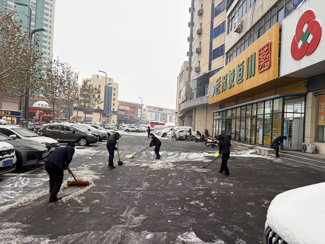 大家分工协作,铲冰棱、扫浮雪、清步道,从营业大厅门口到客户停车场,不放过任何一处易滑隐患。一条条干净通畅的“便民路”就铺满了淄川的街巷,汗水融化冰雪,暖意直达人心。
