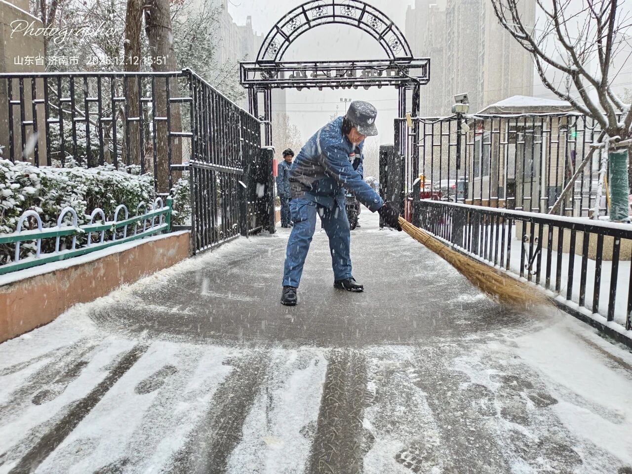 “泉城物业 服务全程” 。12月12日,济南迎来入冬以来首场降雪,济南全市物业服务企业迅速启动应急预案,全力保障小区道路畅通与业主安全出行。