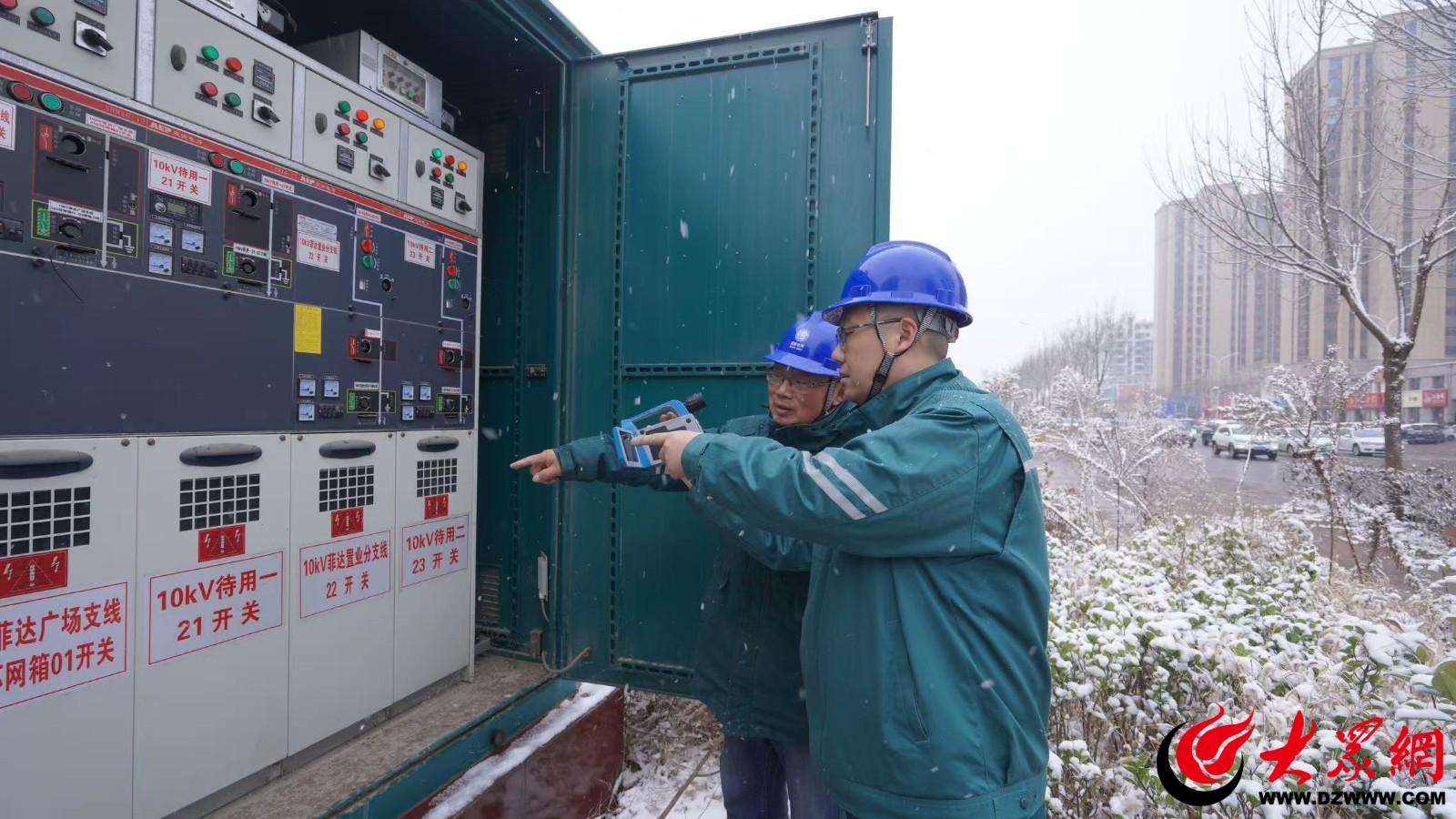 在高密市经济开发区南姚村,国网高密市供电公司开发区供电所网格经理孙义刚、刘海洋顾不上降雪天气,带上工器具就开始对这个村的2号配电台区的变压器、配电箱设备进行检测,详细检查配电设备电流、电压,对主变压器进行红外测温,保障寒潮期间当地居民取暖用电安全可靠。