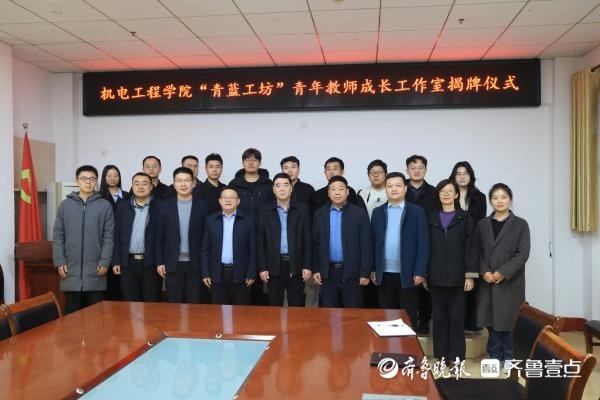 仪式最后,闵祥寨和韩玉勇共同为“青蓝工坊”青年教师成长工作室揭牌。“青蓝工坊”的成立为青年教师快速成长提供了崭新的平台,机电工程学院将以此为契机和抓手,不断完善培养机制、丰富培养内容、创新培养形式,让“青蓝工坊”真正成为青年教师成长的“加油站”和“孵化器”。