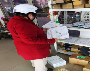 康二村儿童主任门丽君领取新疆发过来的快件